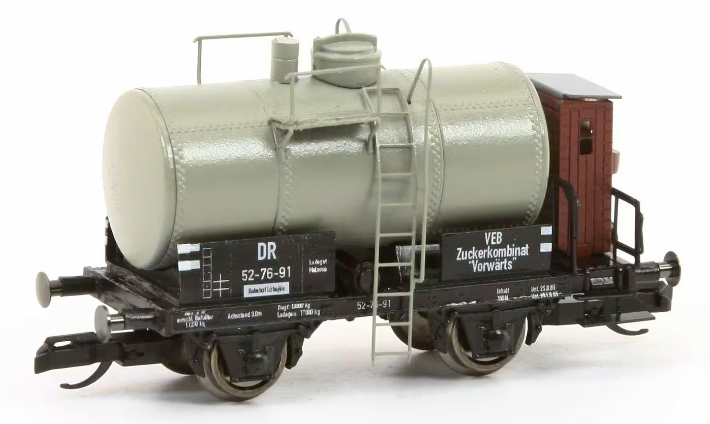 | kotlový vůz šedý s brzdařskou budou na převoz melasy |