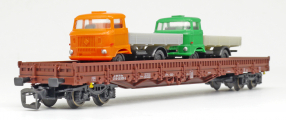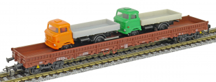 | nízkostěnný nákladní vůz červenohnědý ložený dvěma nákladními auty IFA |