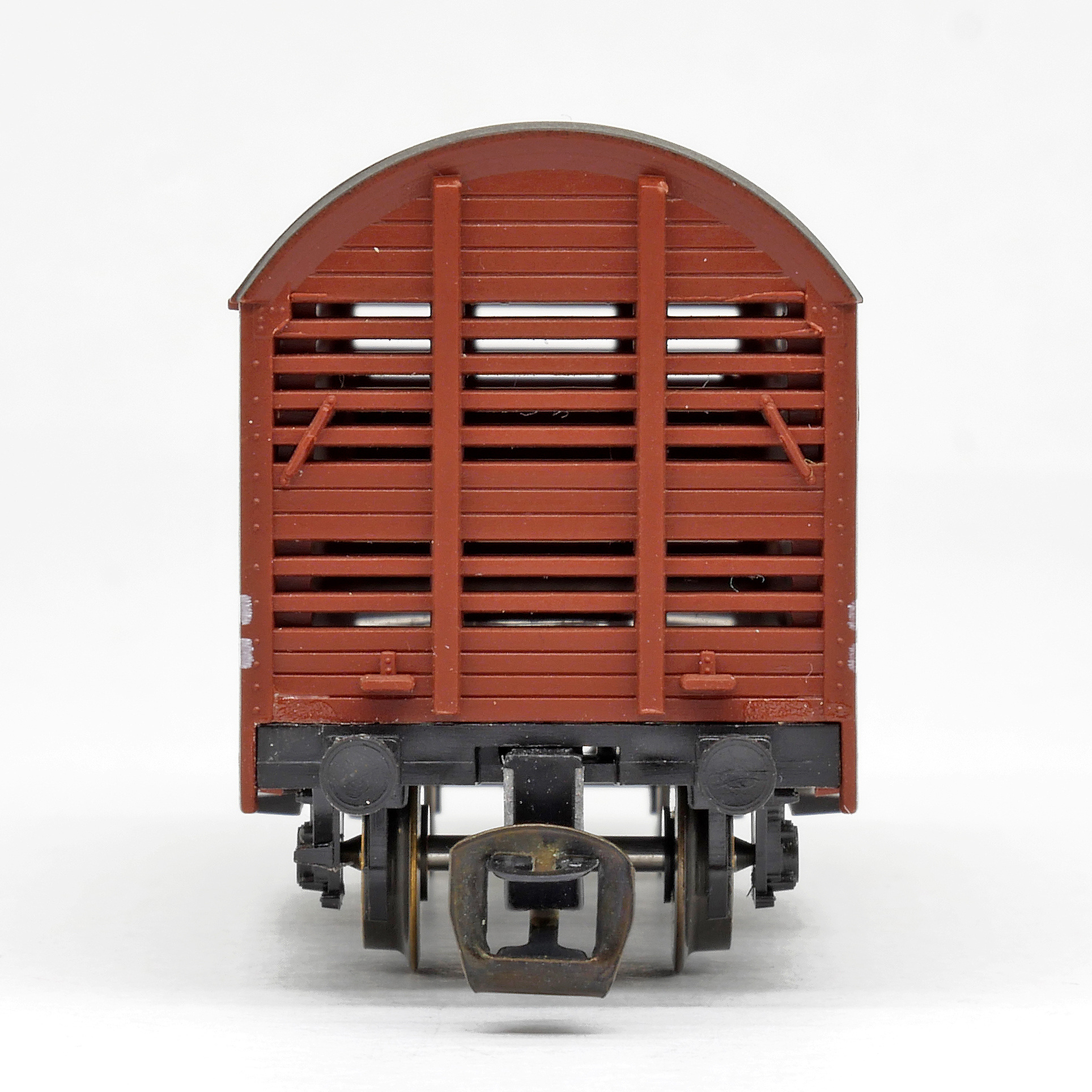 | nákladní vůz na přepravu drobného zvířectva červenohnědý s černou střechou |