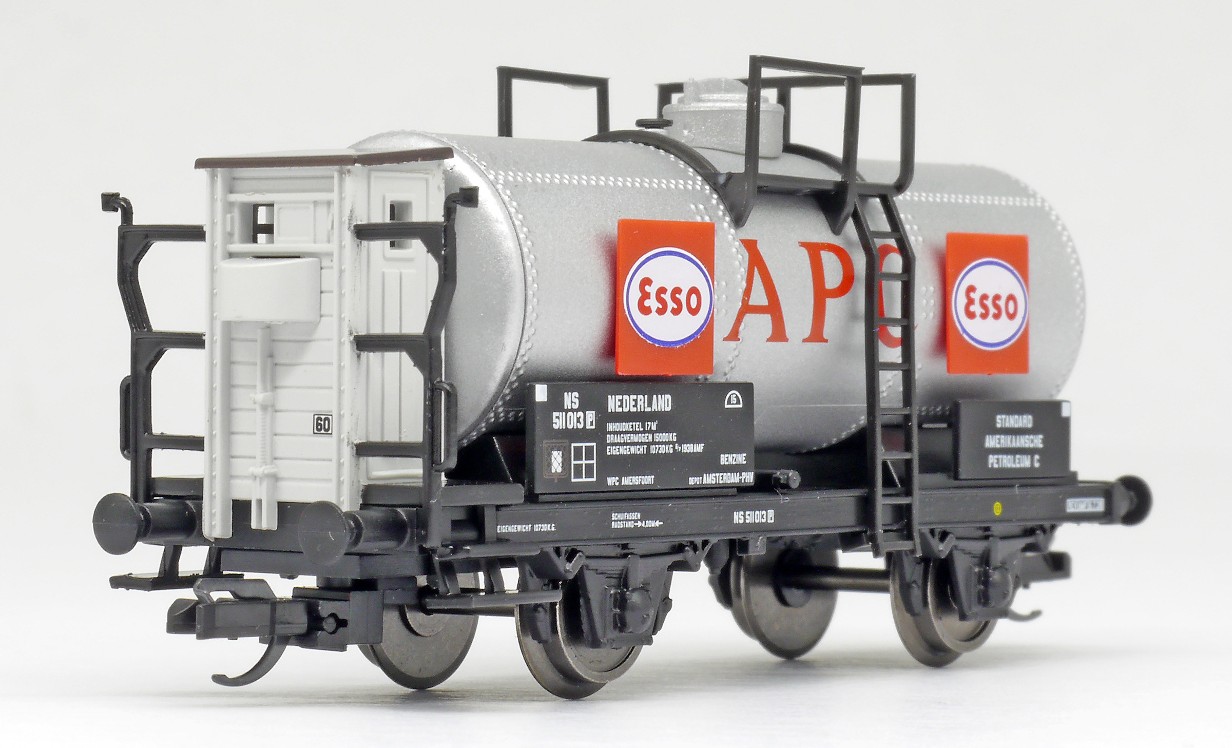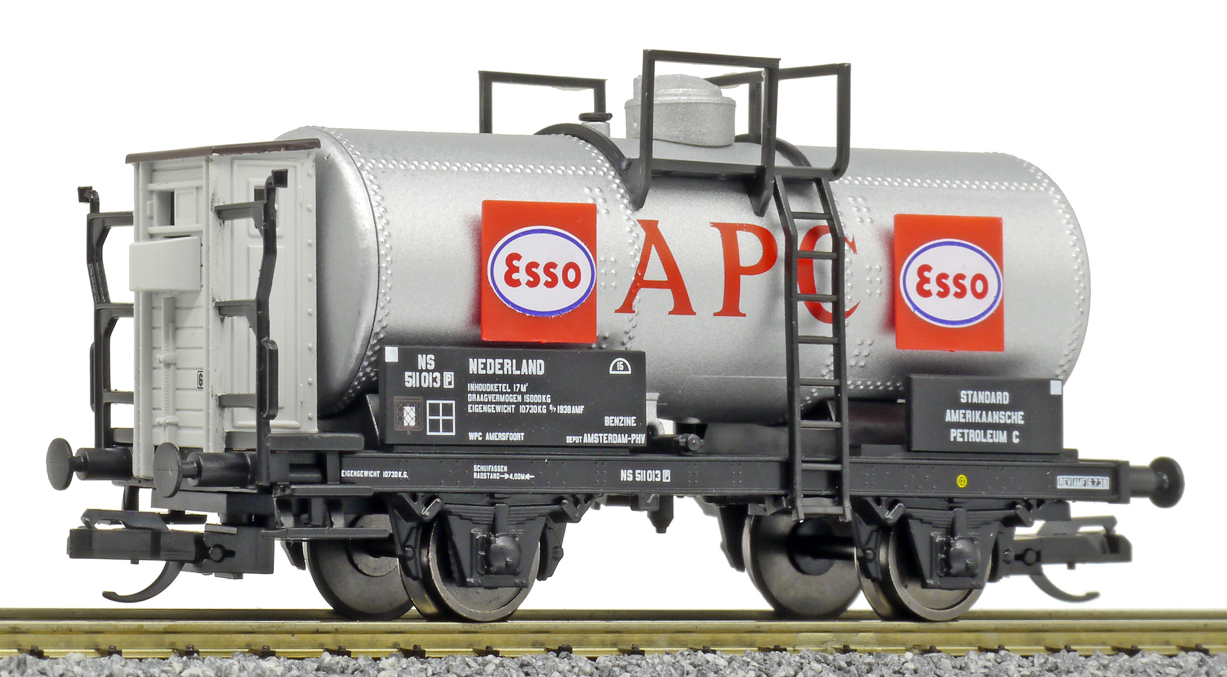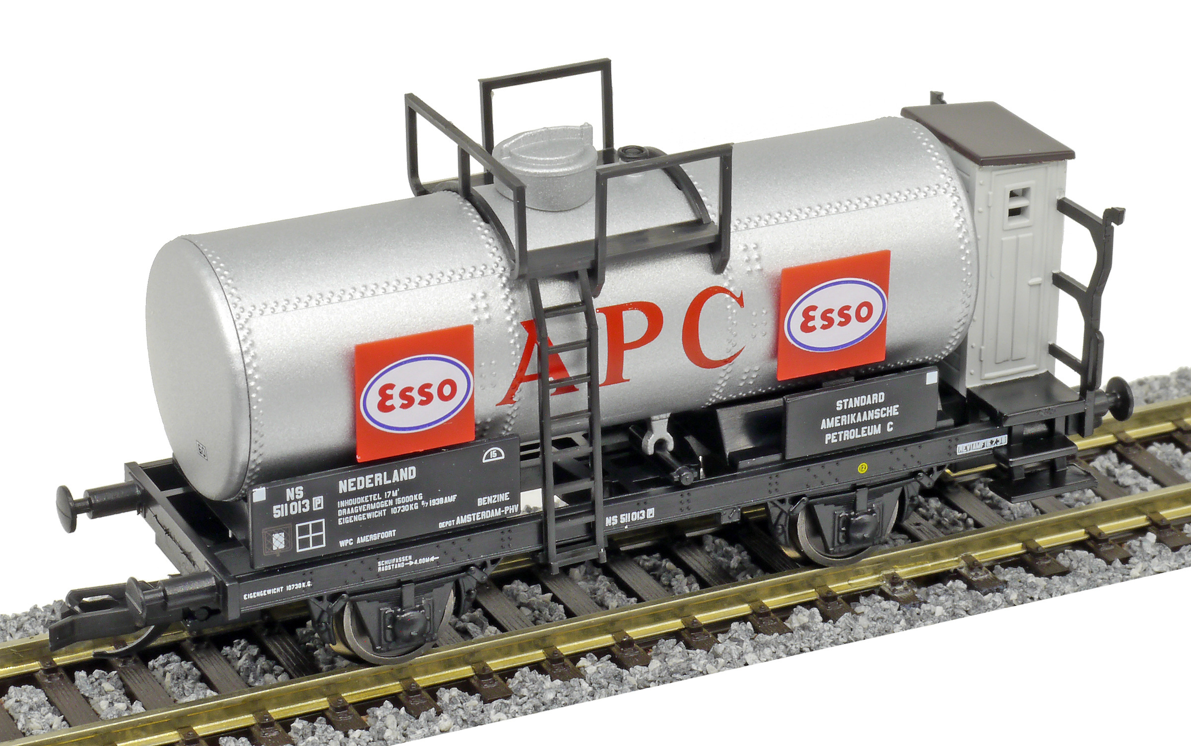 | kotlový vůz stříbrný s brzdařskou budkou „APC/ESSO“ |