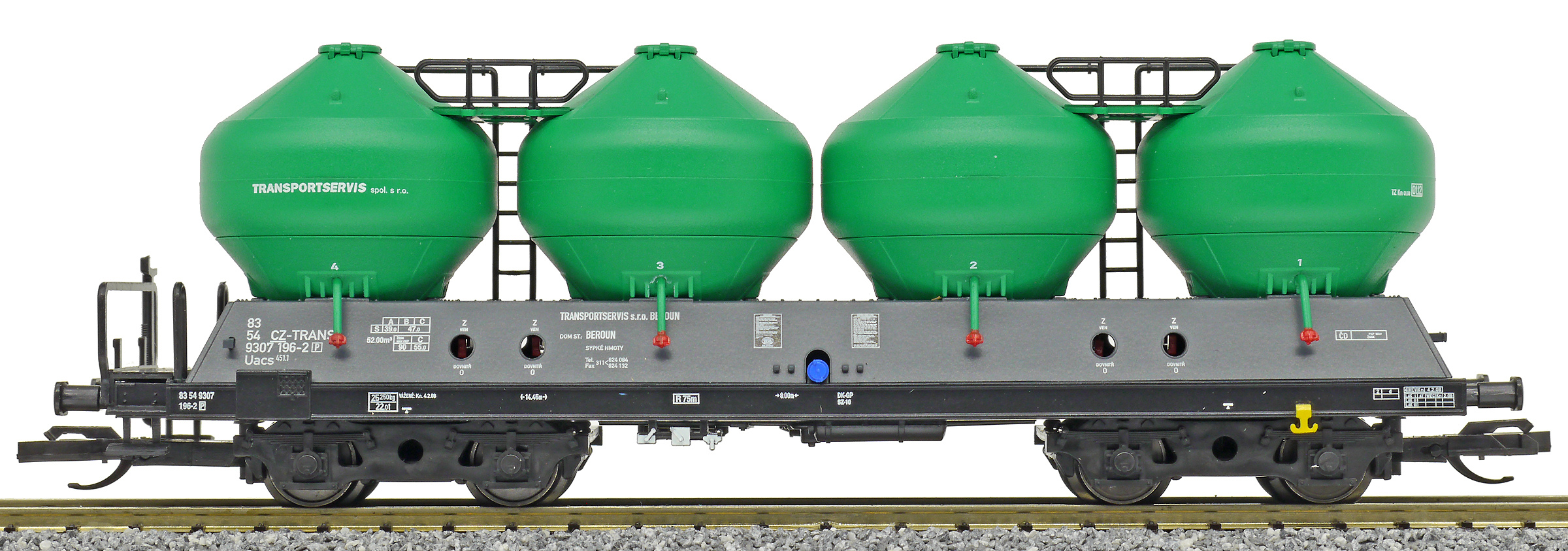 | • 83 54 9307 196-2 | → | nákladní, s podvozky, soukromý vůz, pro mezinárodní dopravu dle zvláštních úmluv |