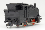 | parní lokomotiva černá v barvě plastu bez potisku, zjednodušený rozvod |
