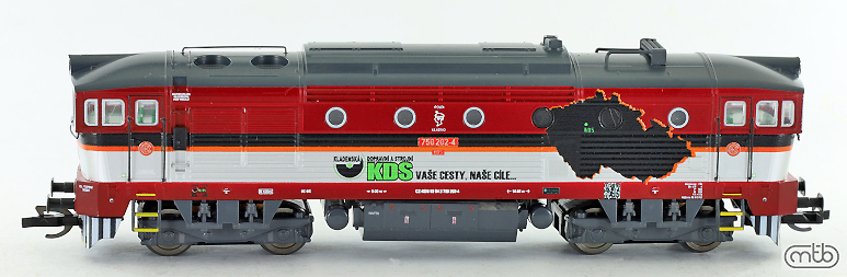 | dieselová lokomotiva v barevném schematu „KDS“ |