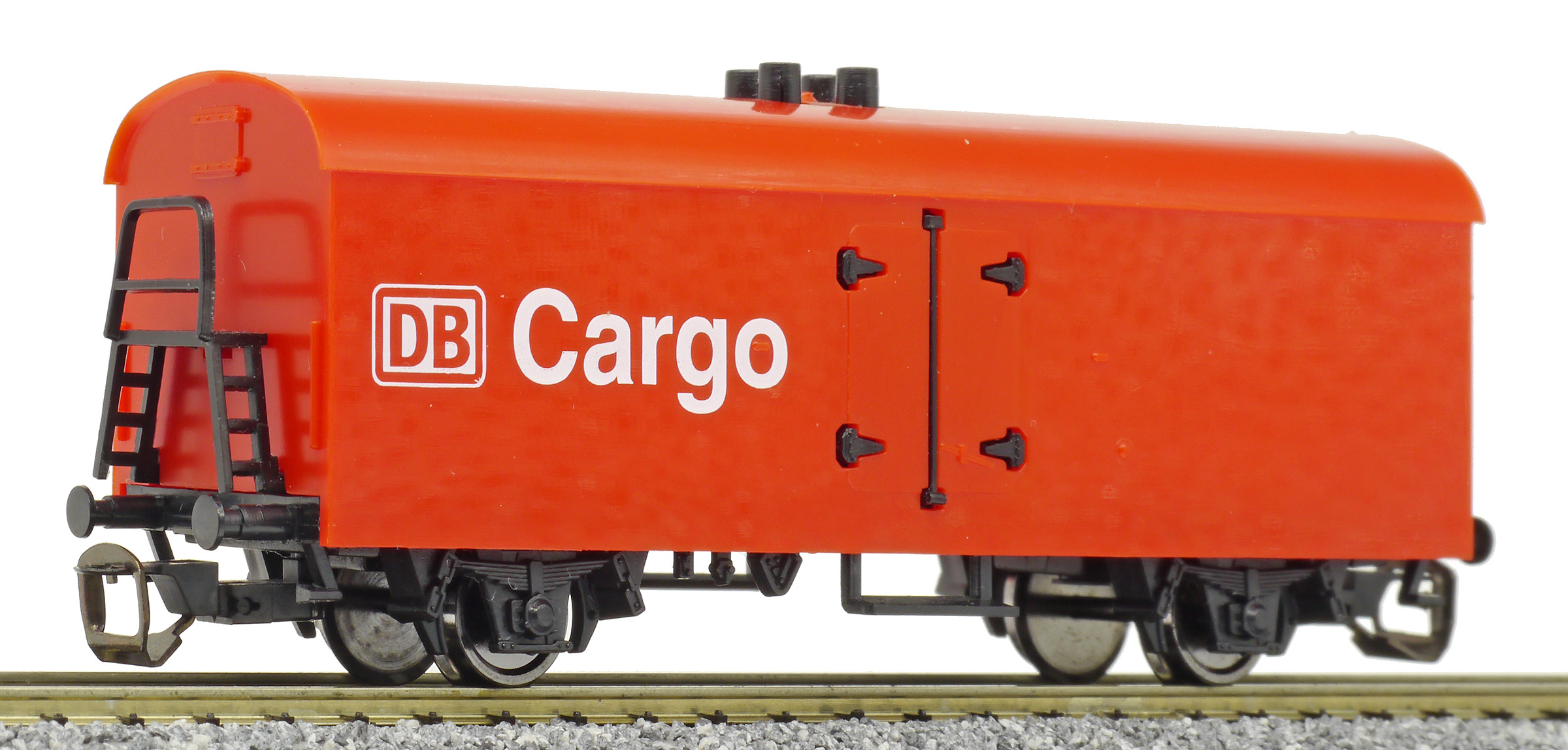 Popis   nákladní chladící vůz červený v barvě plastu „DB Cargo“
