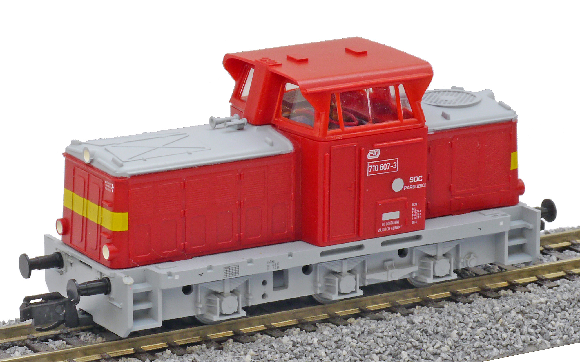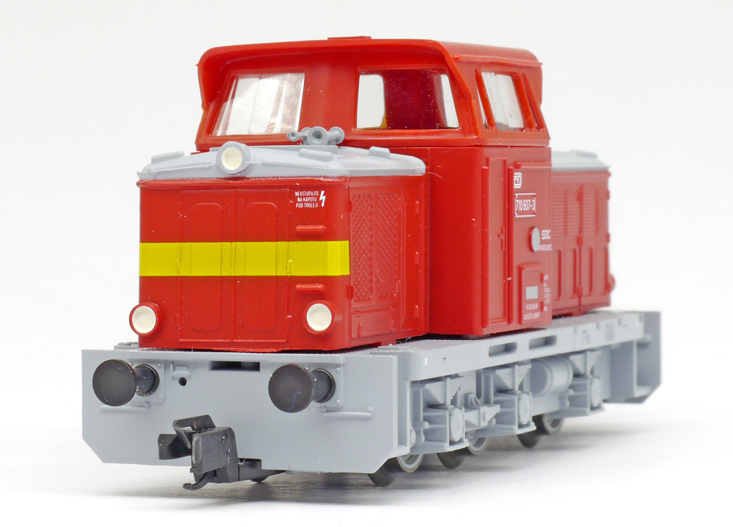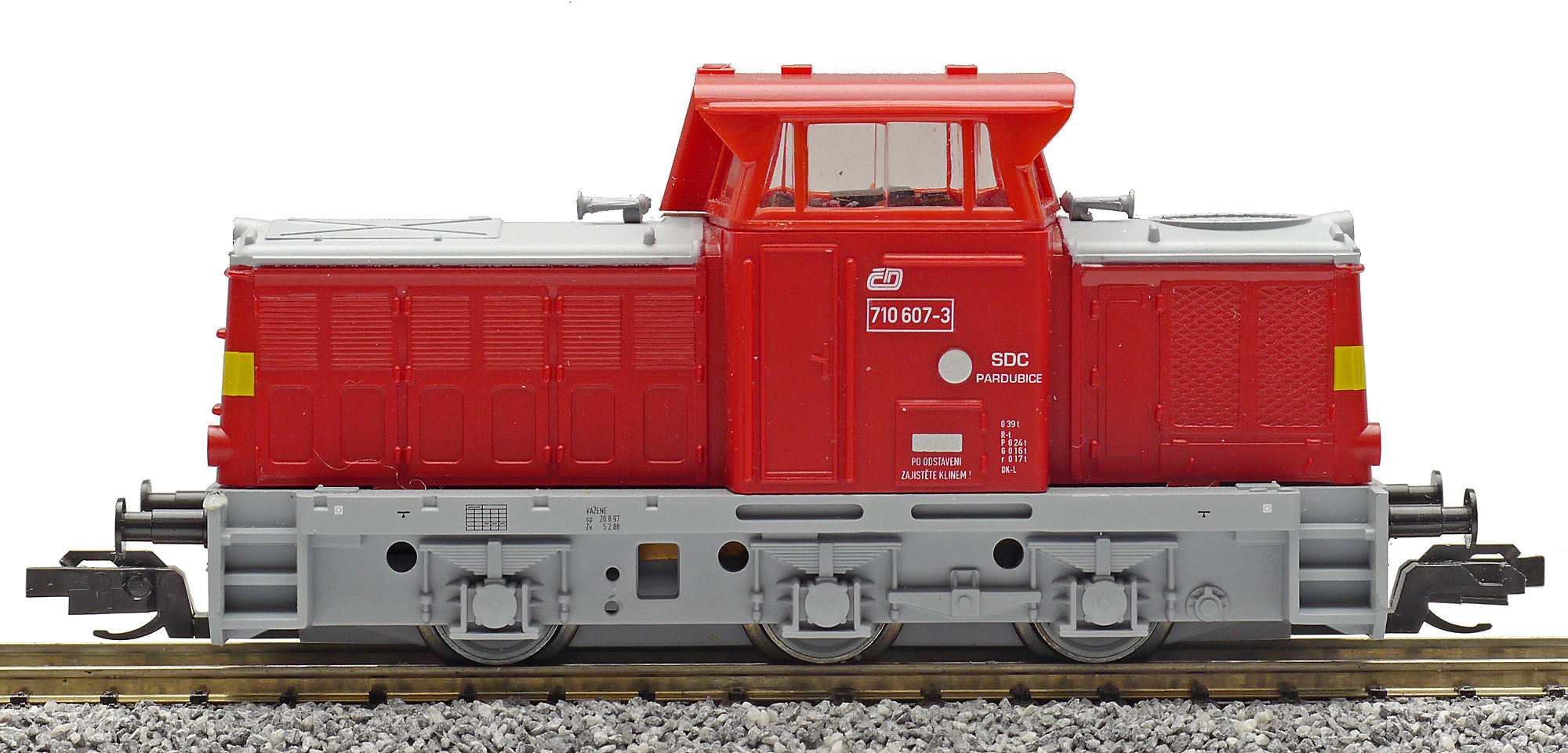 Popis   dieselová lokomotiva červená s šedým pojezdem a výstražným žlutým pruhem