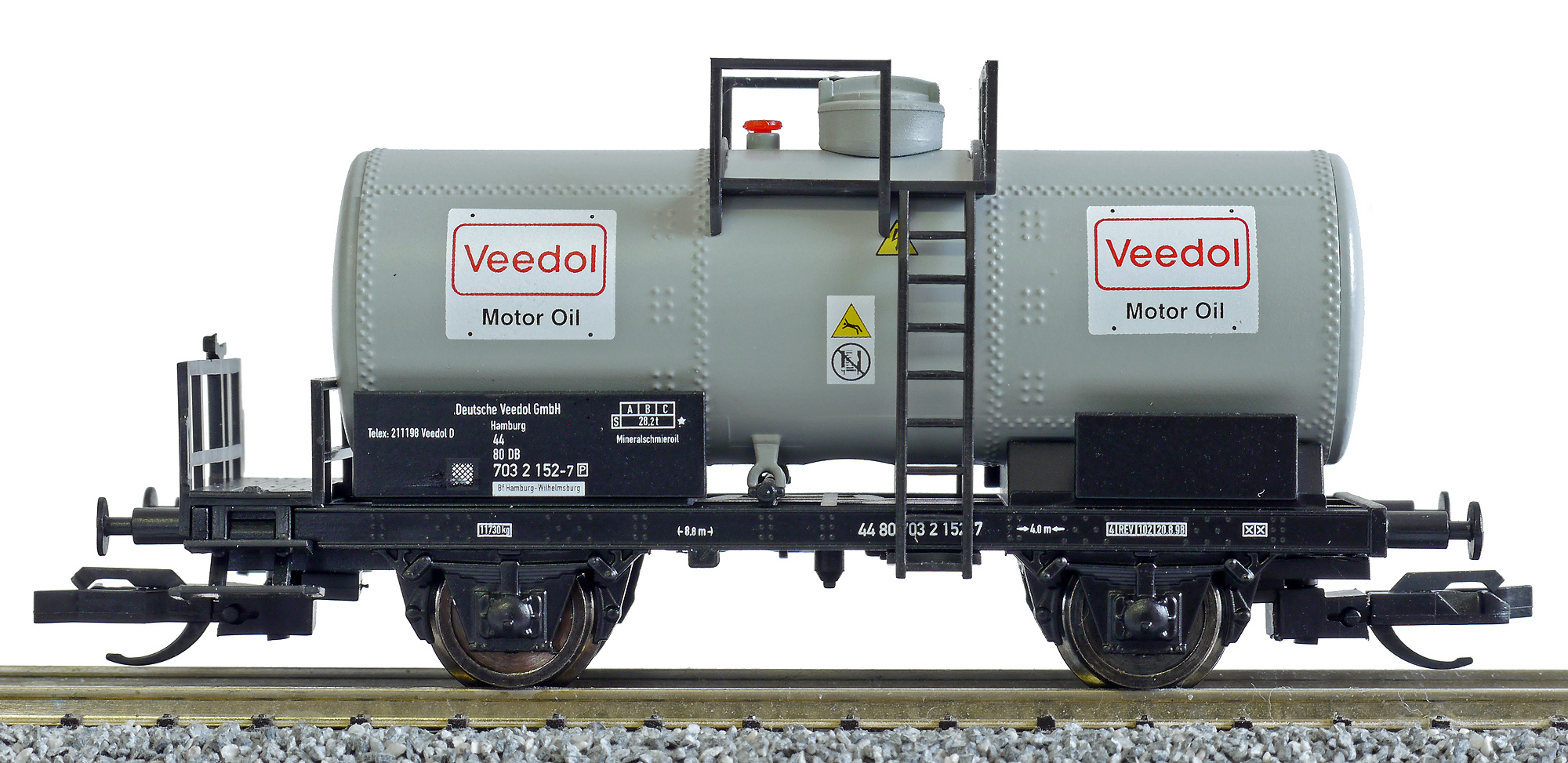 cisternový vůz šedý s černým rámem „Veedol“