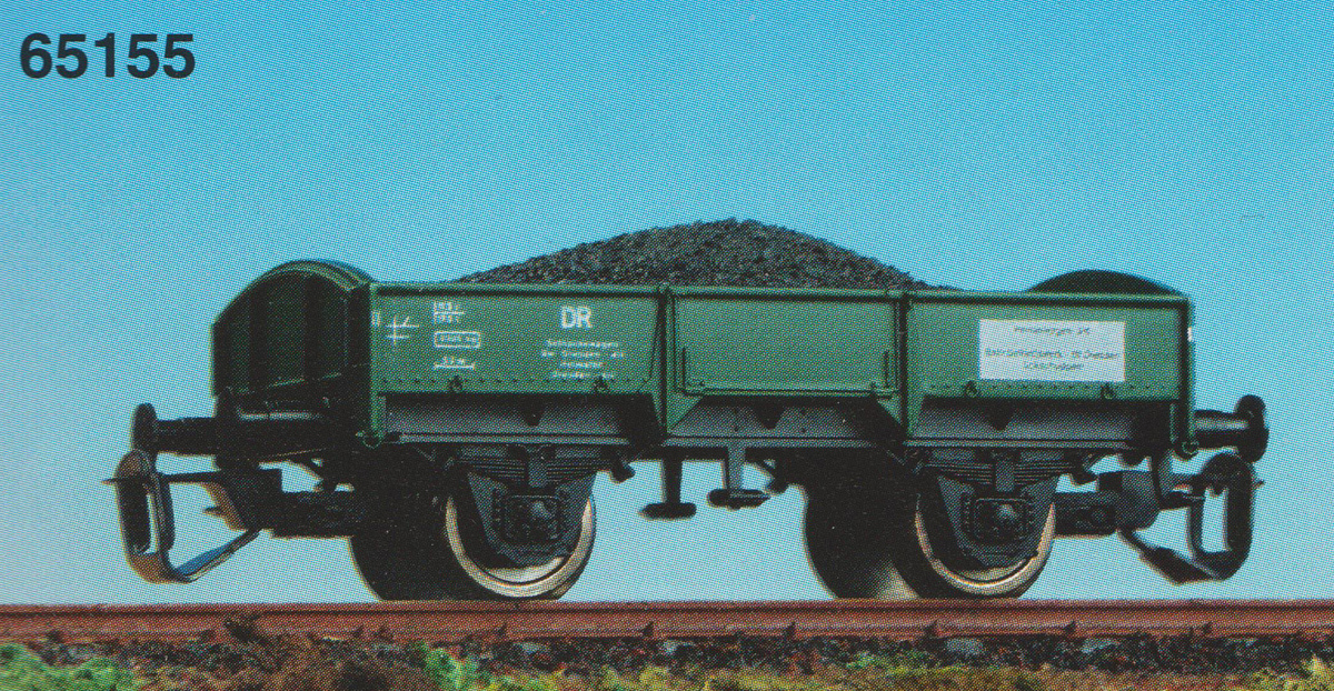 Popis   nízkostěnný nákladní vůz tmavě zelený, černý pojezd, s nákladem strusky