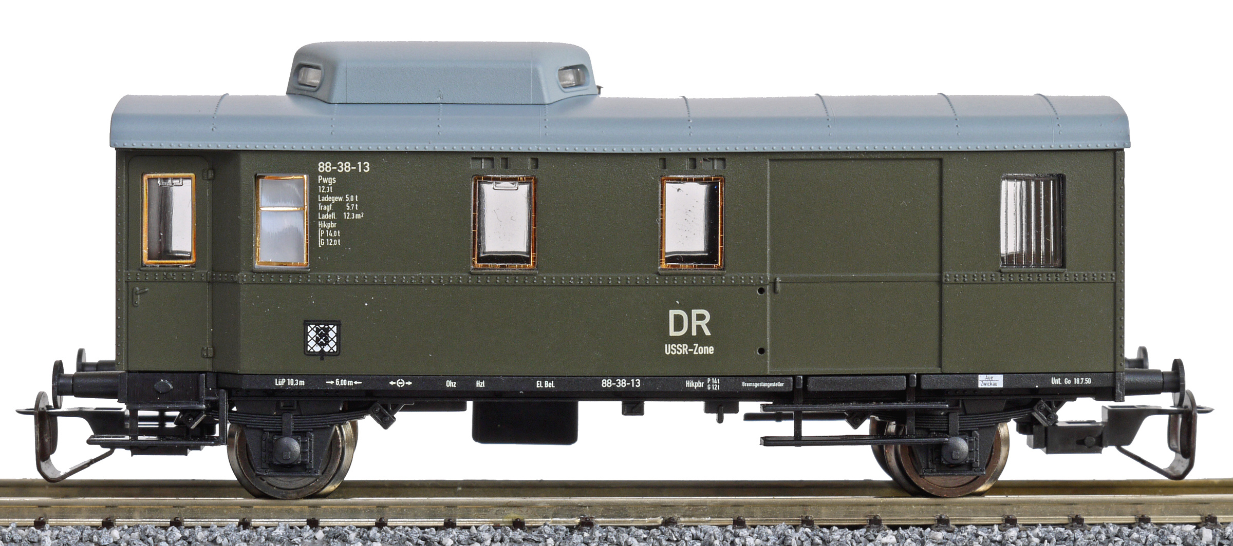 Popis   krytý nákladní vůz červenohnědý s tmavě šedou střechou „USSR-Zone“