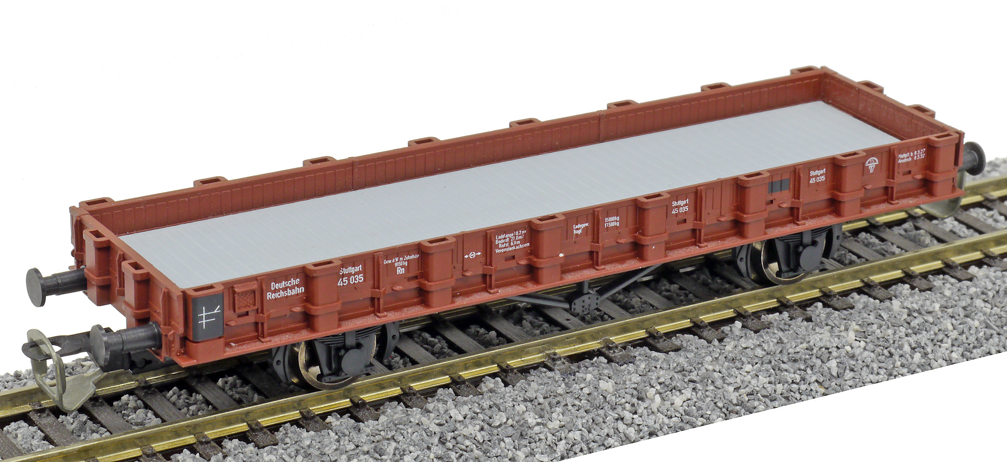 | nízkostěnný nákladní vůz červenohnědý s klanicemi |