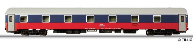 | lůžkový vůz modrý-bílý se světle šedou střechou |
