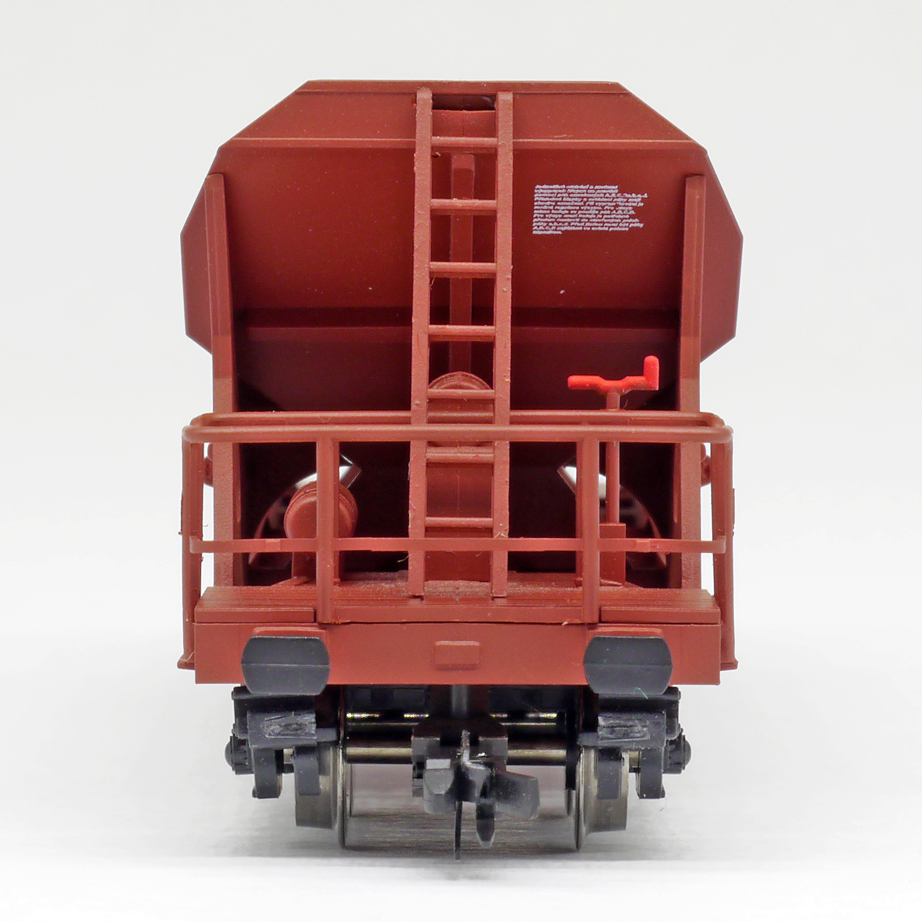 | nákladní samovýsypný vůz červenohnědý s černými podvozky |