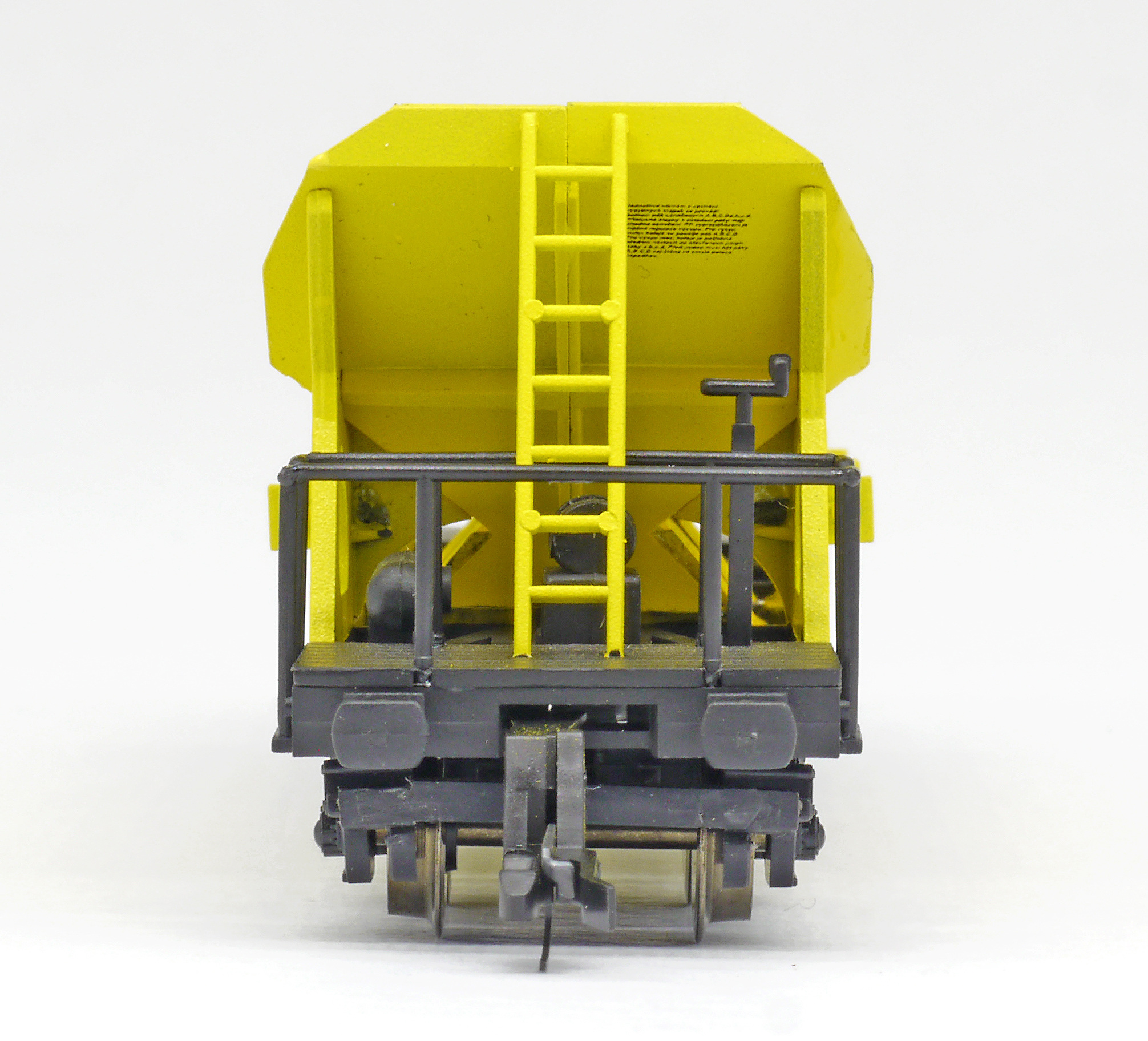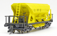 nákladní samovýsypný pracovní vůz žlutý s černým rámem a podvozky