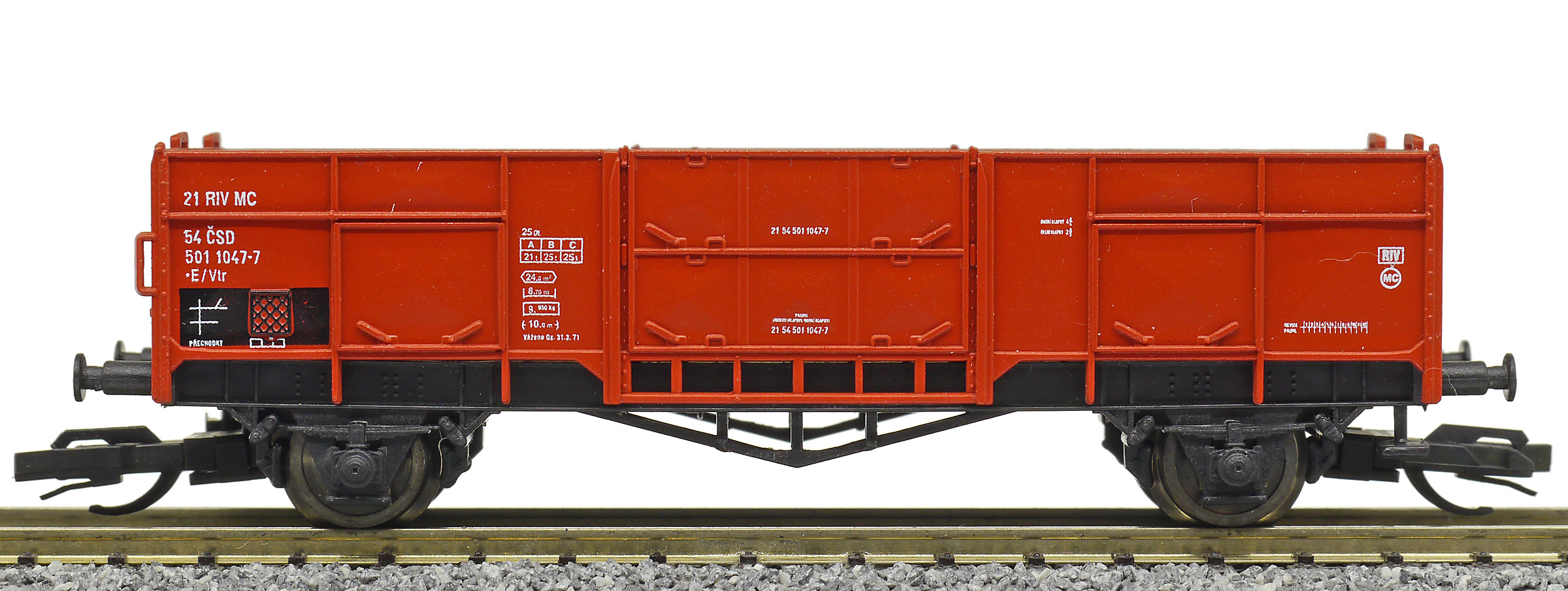 | • 21 54 501 1047-7 | → | nákladní, nezávislé nápravy, pevný rozchod, ve vlastnictví železniční správy, RIV, PPV |