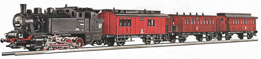 | set parní lokomotivy BR 92, jednoho služebního a dvou osobních vozů |