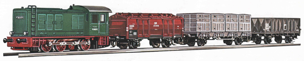 set dieselové lokomotivy V 36 a tří nákladních vozů