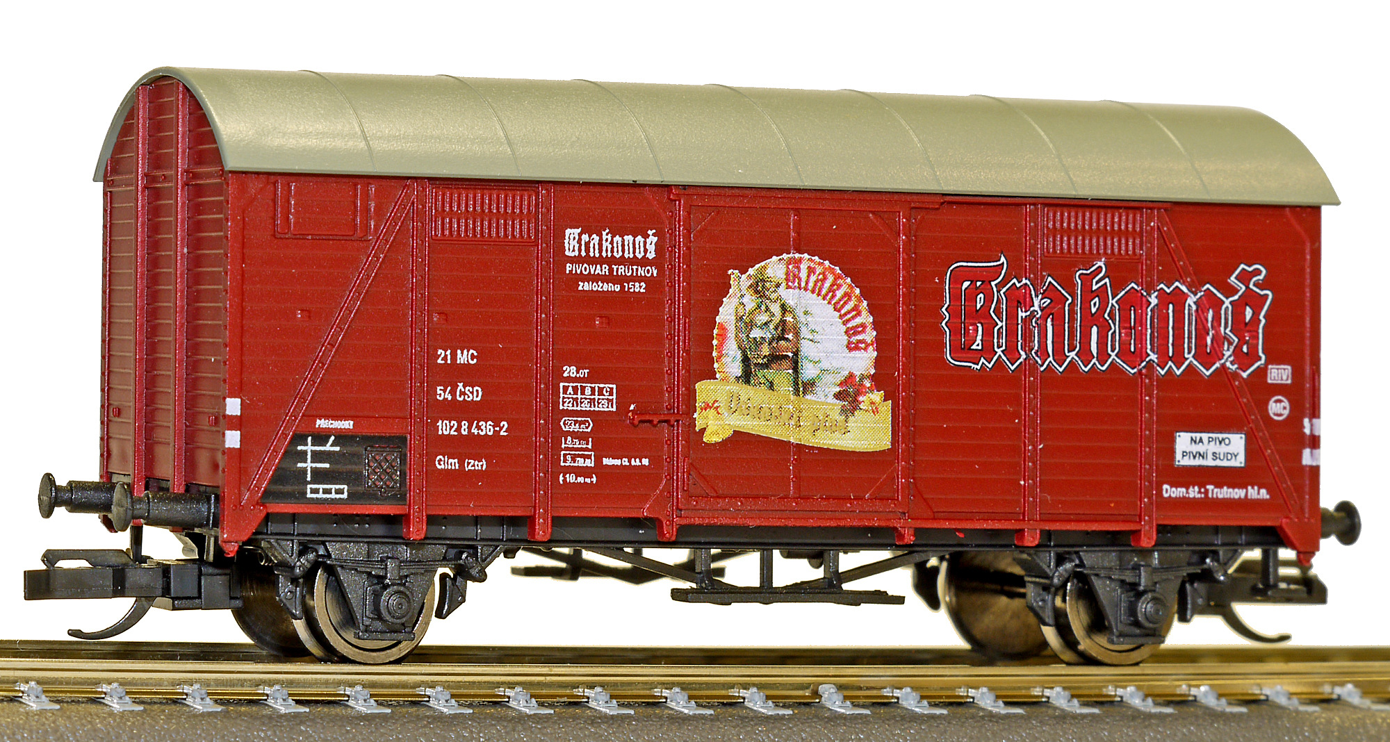 | krytý nákladní vůz červenohnědý s šedou střechou „Krakonoš“ |