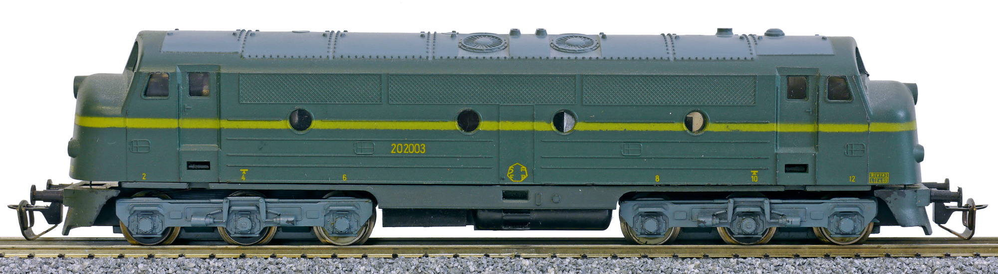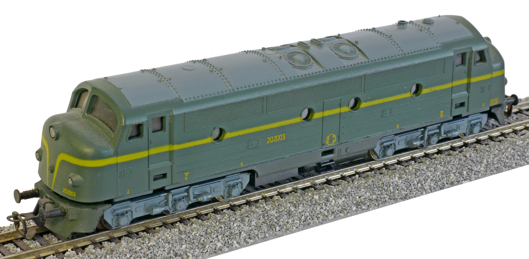 Popis   dieselová lokomotiva zelená se žlutým pruhem