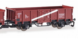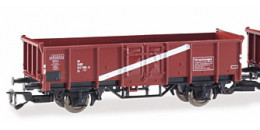| otevřený nákladní vůz červenohnědý s šikmým bílým pruhem |