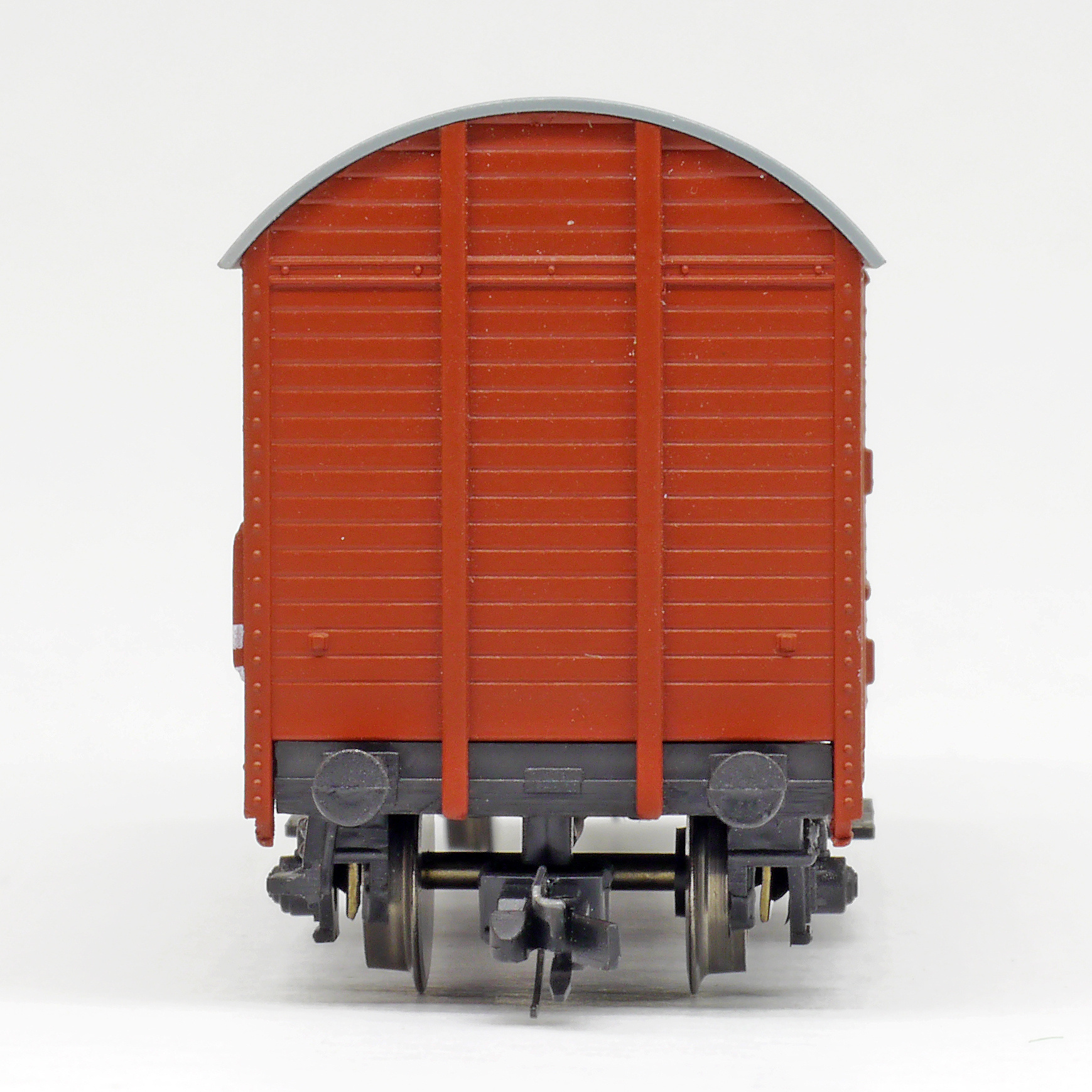 | krytý nákladní vůz červenohnědý s šedou střechou |