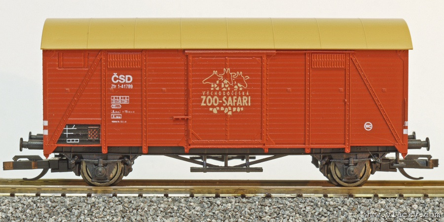 | krytý nákladní vůz červenohnědý s okrovou střechou „ZOO - Safari” |