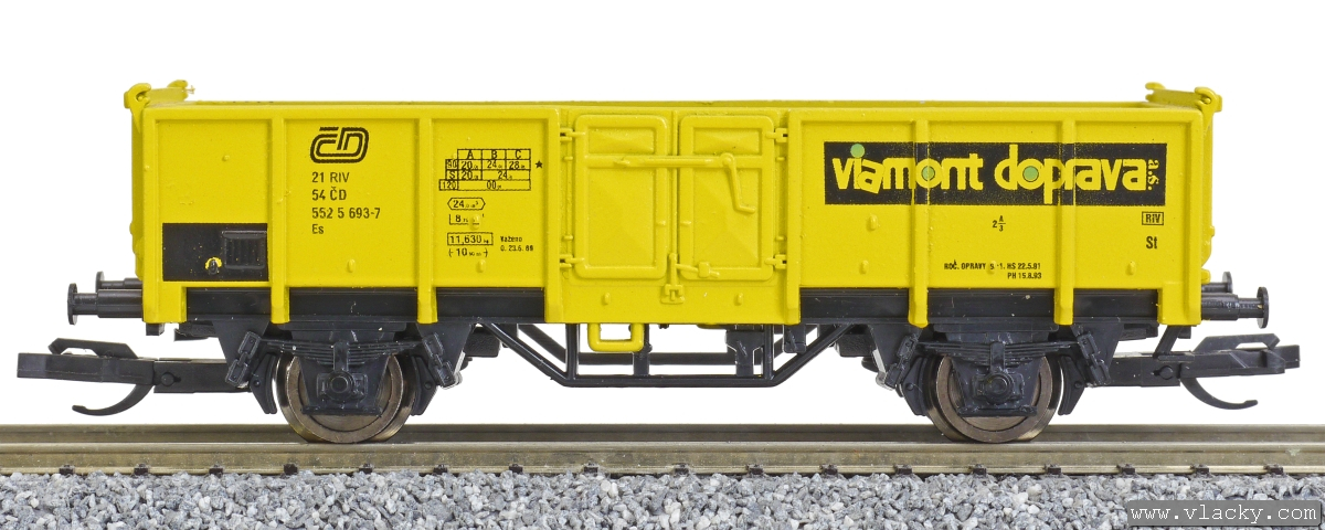 | • 21 54 552 5 693-7 | → | nákladní, nezávislé nápravy, pevný rozchod, ve vlastnictví železniční správy, RIV, PPV |