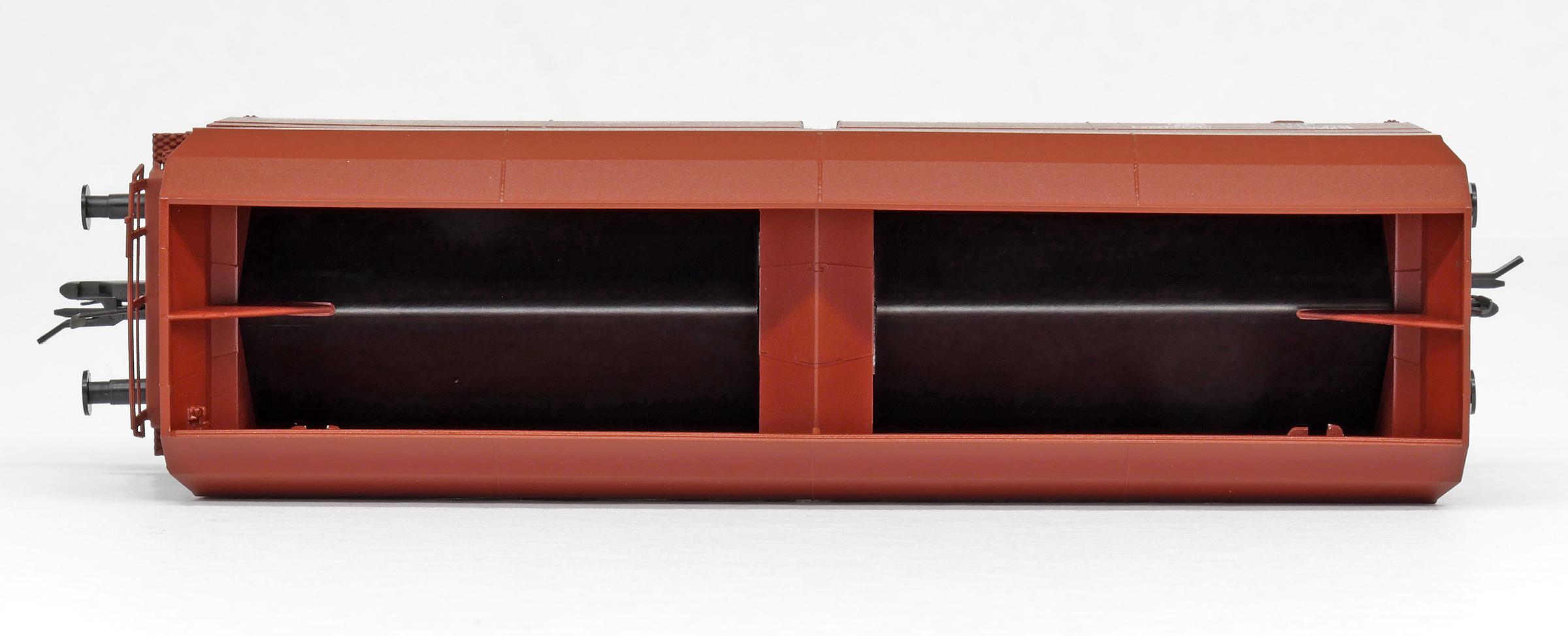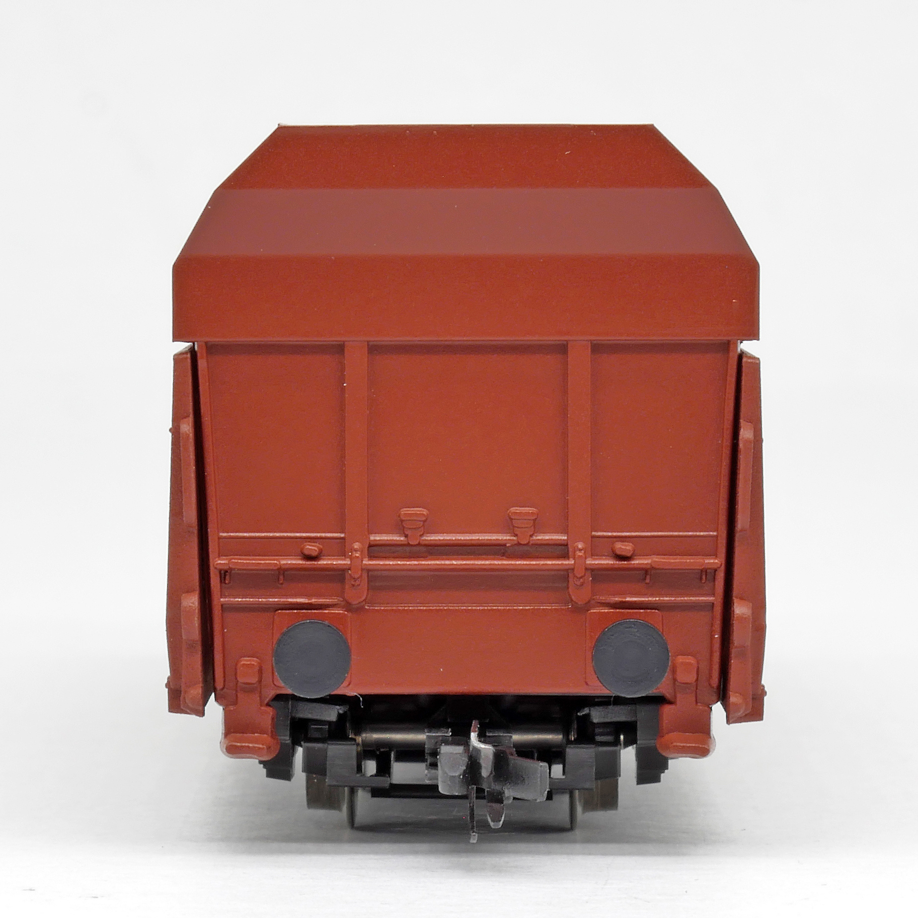 | nákladní samovýsypný vůz červenohnědý s opravnými fleky |