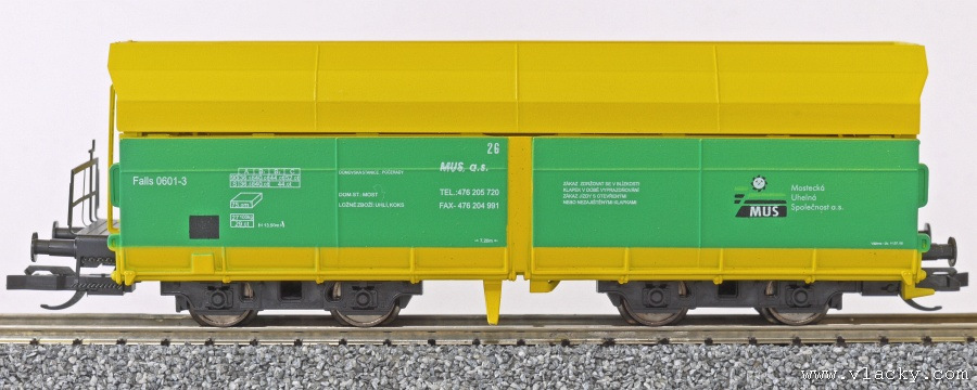 | nákladní samovýsypný vůz žlutý-zelený „Mostecká uhelná společnost a.s.“ |