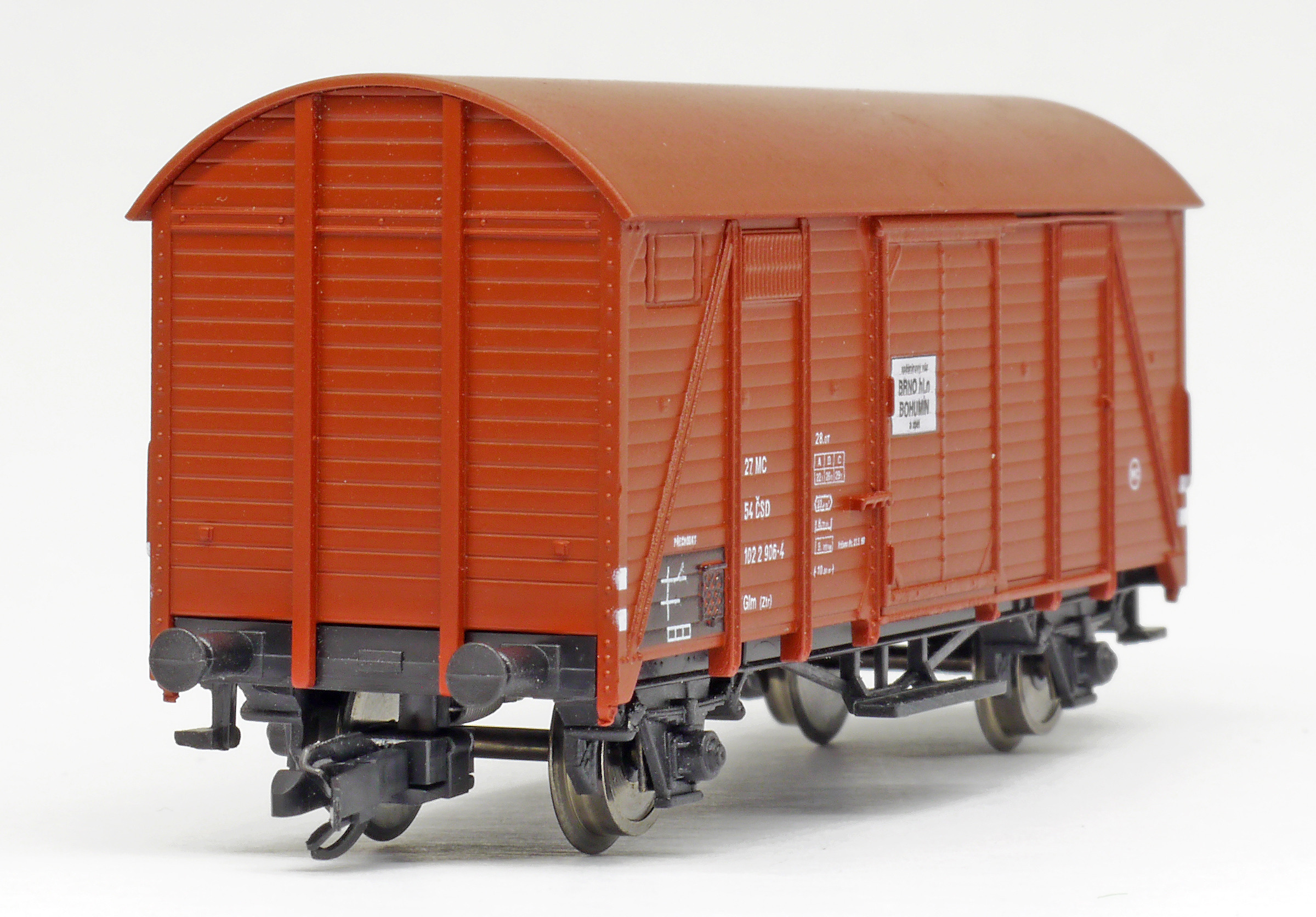 | krytý nákladní vůz červenohnědý spěšninový „Brno hl.n. - Bohumín” |