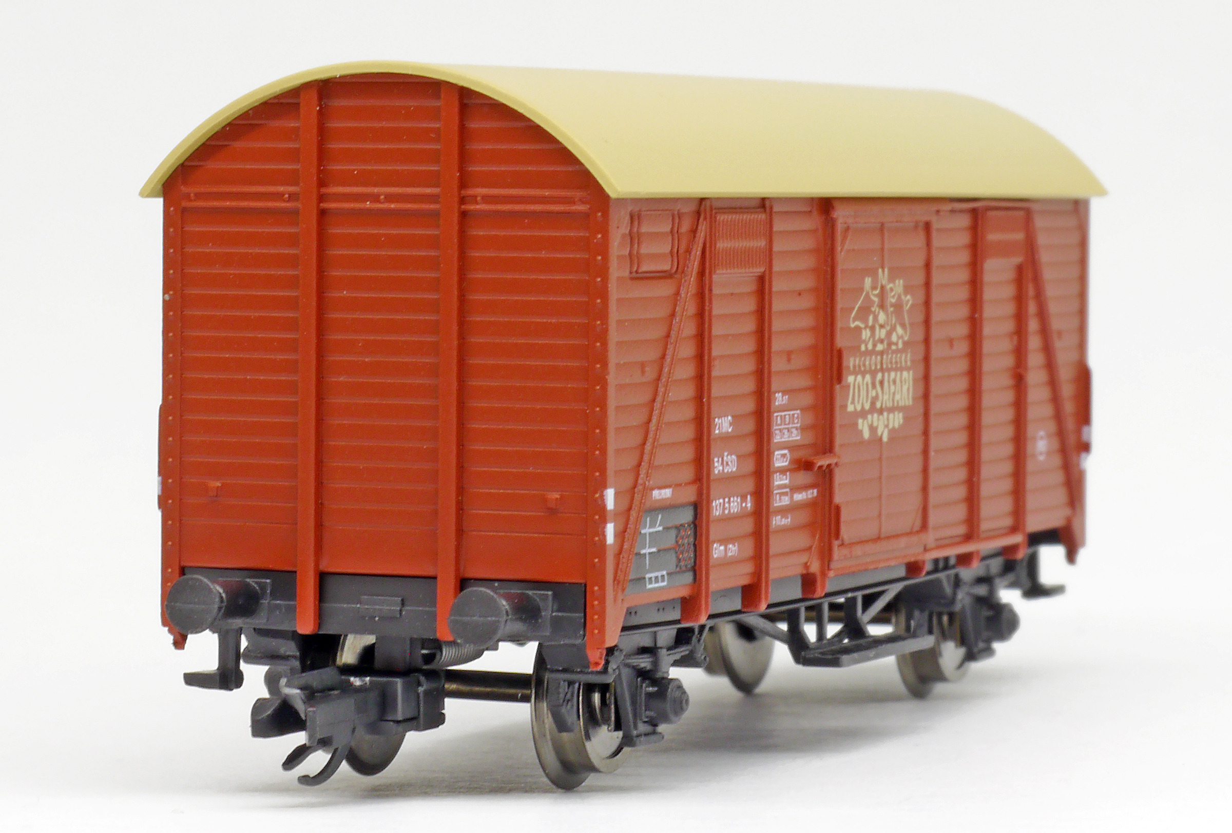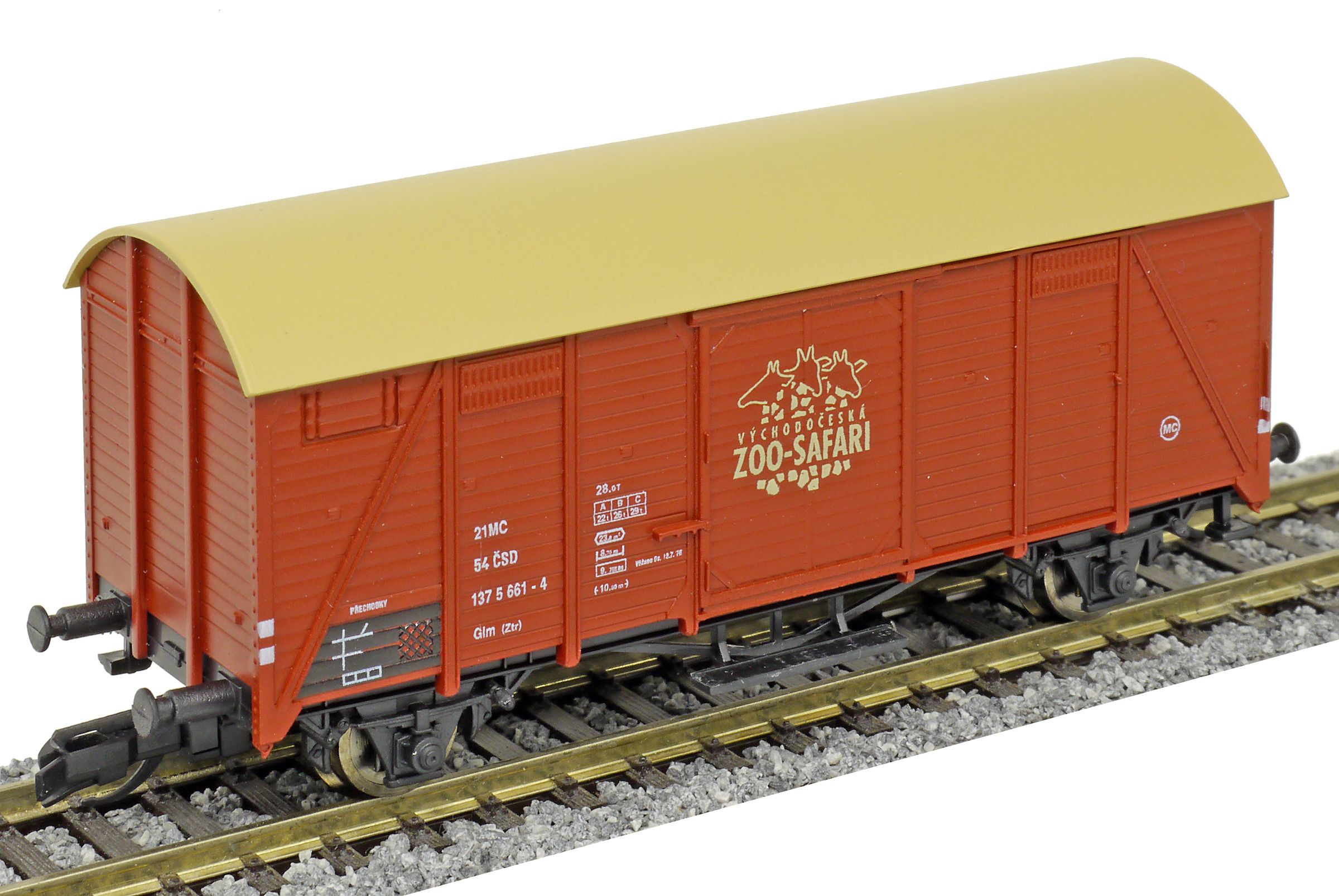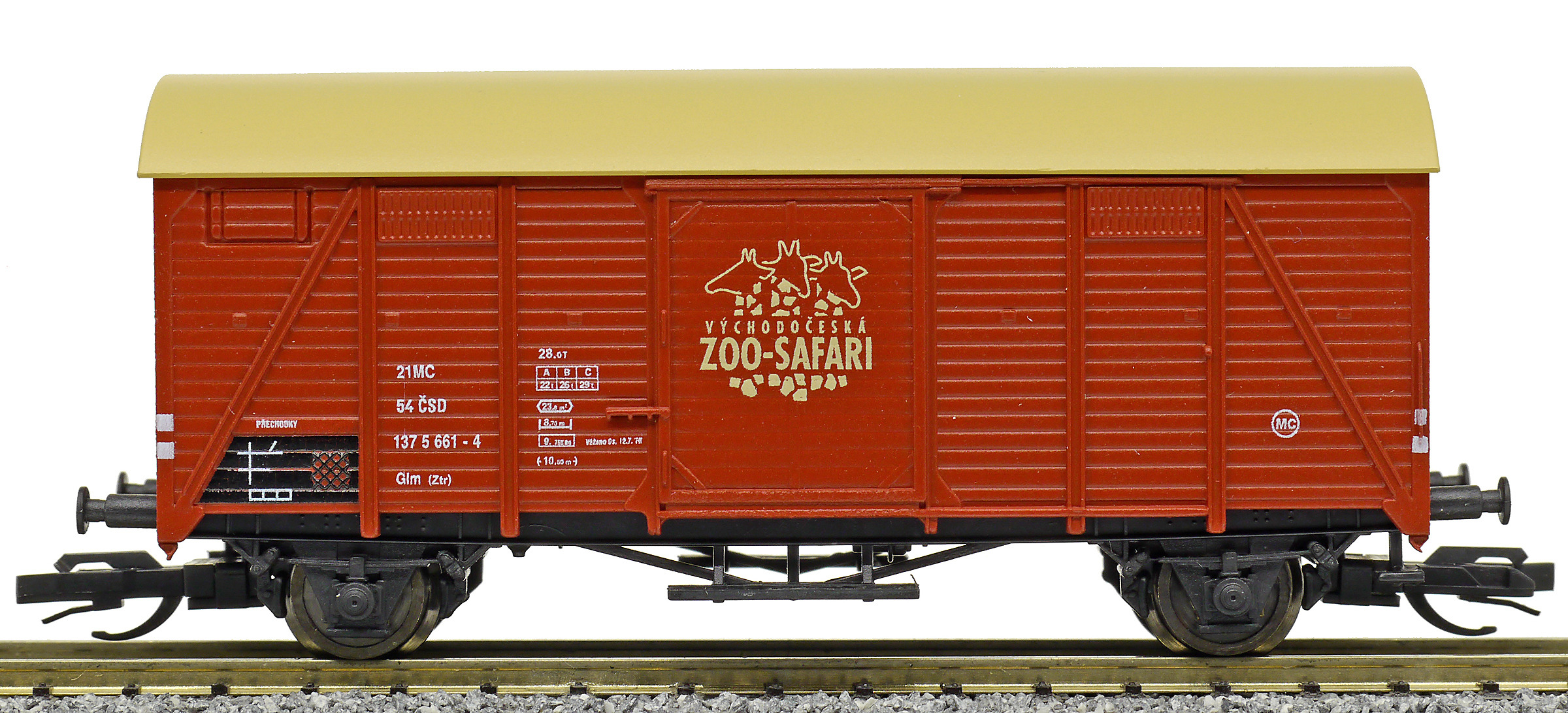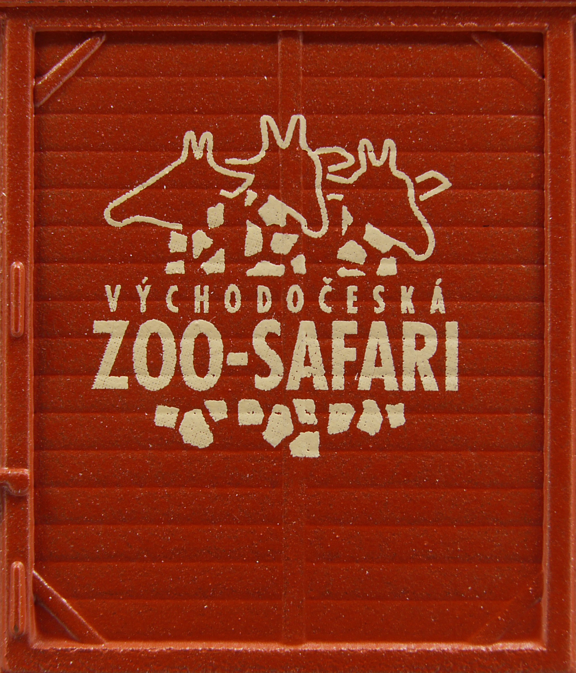 | krytý nákladní vůz červenohnědý s okrovou střechou „ZOO - Safari” |