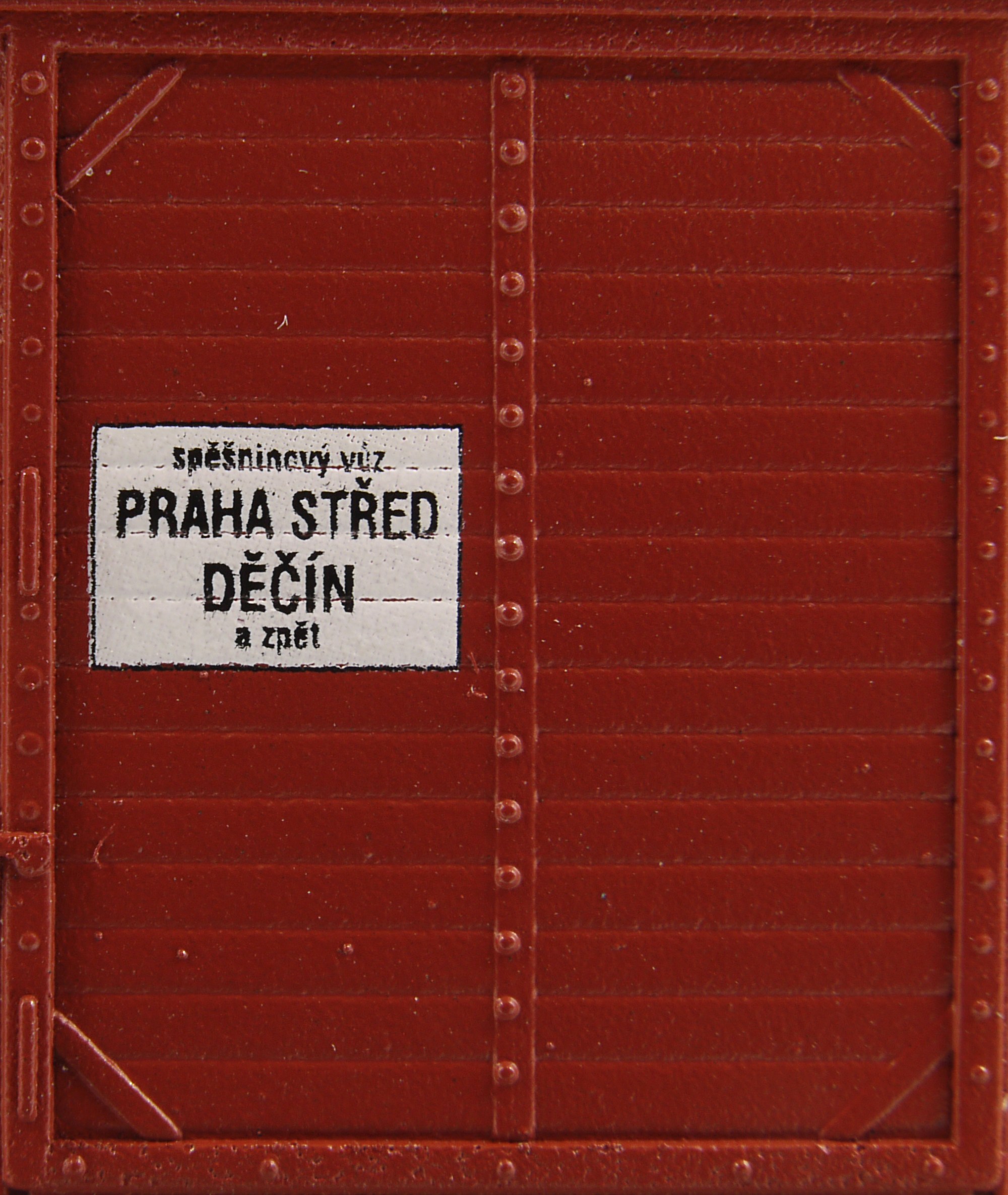 | krytý nákladní vůz červenohnědý spěšninový „Praha střed - Děčín” |
