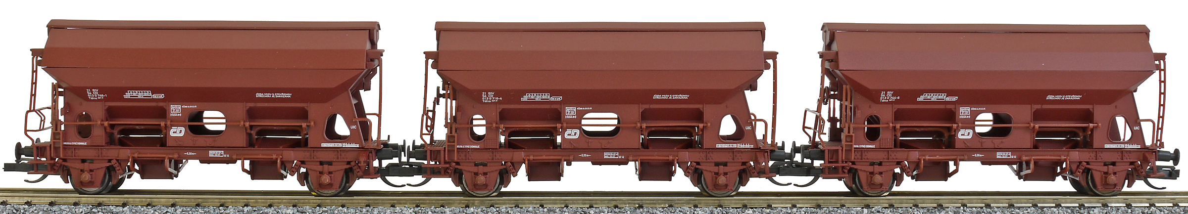 měřítko 1:120 - rozchod kolejí 12 mm kinematika krátkého spřáhla (KKK) podle normy NEM 358 81 mm - celková délka modelu přes nárazníky