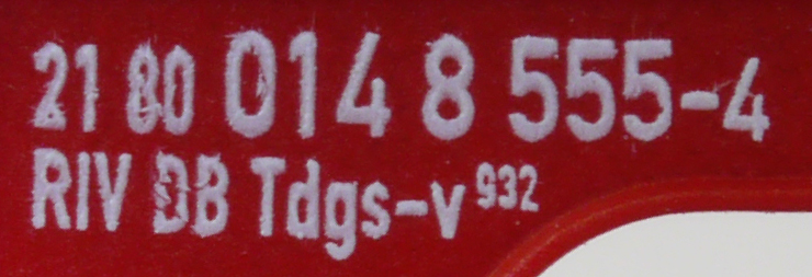 | • 21 80 014 8 555-4 | → | nákladní, nezávislé nápravy, pevný rozchod, ve vlastnictví železniční správy, RIV, PPV |
