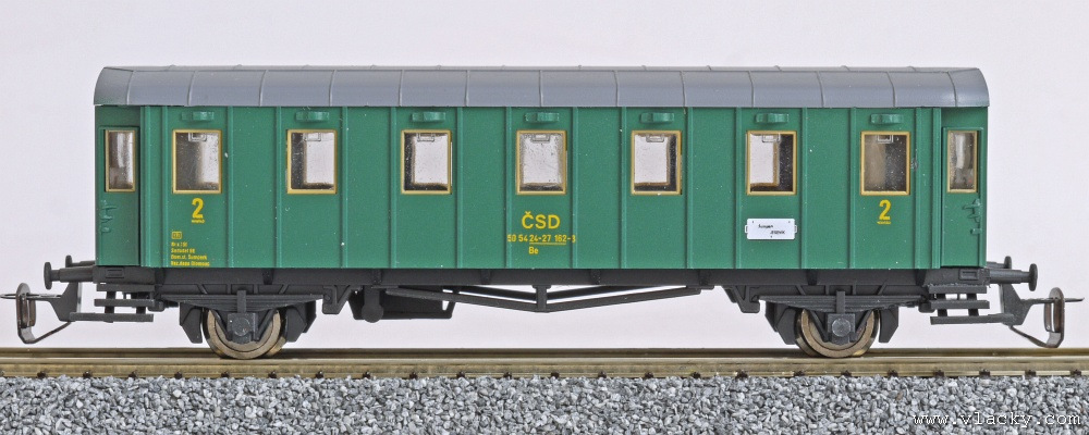 zelený s šedou střechou 2. tř. Be, směrová cedule "Šumperk - Jeseník"