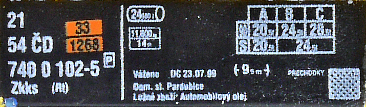 | • 21 54 740 0 102-5 | → | Z - kotlový (cisternový) vůz |