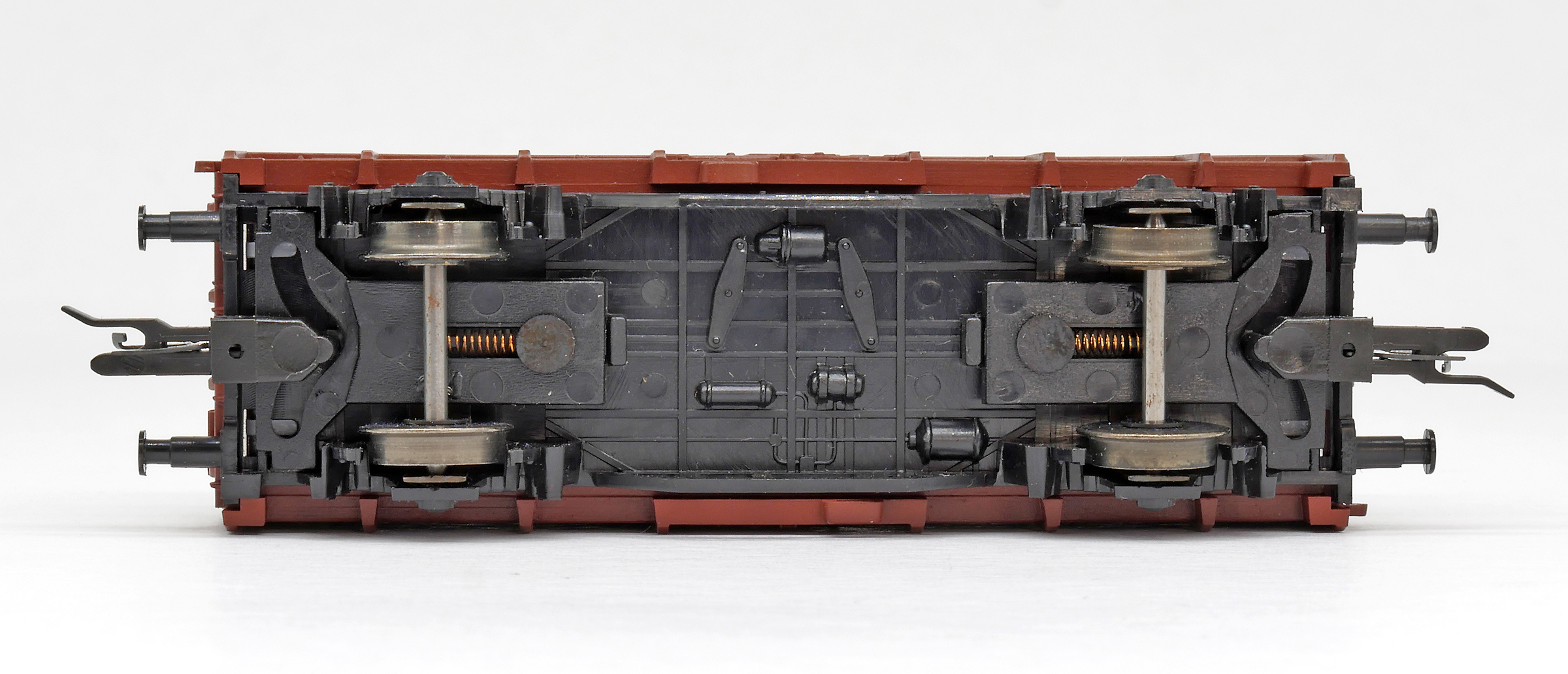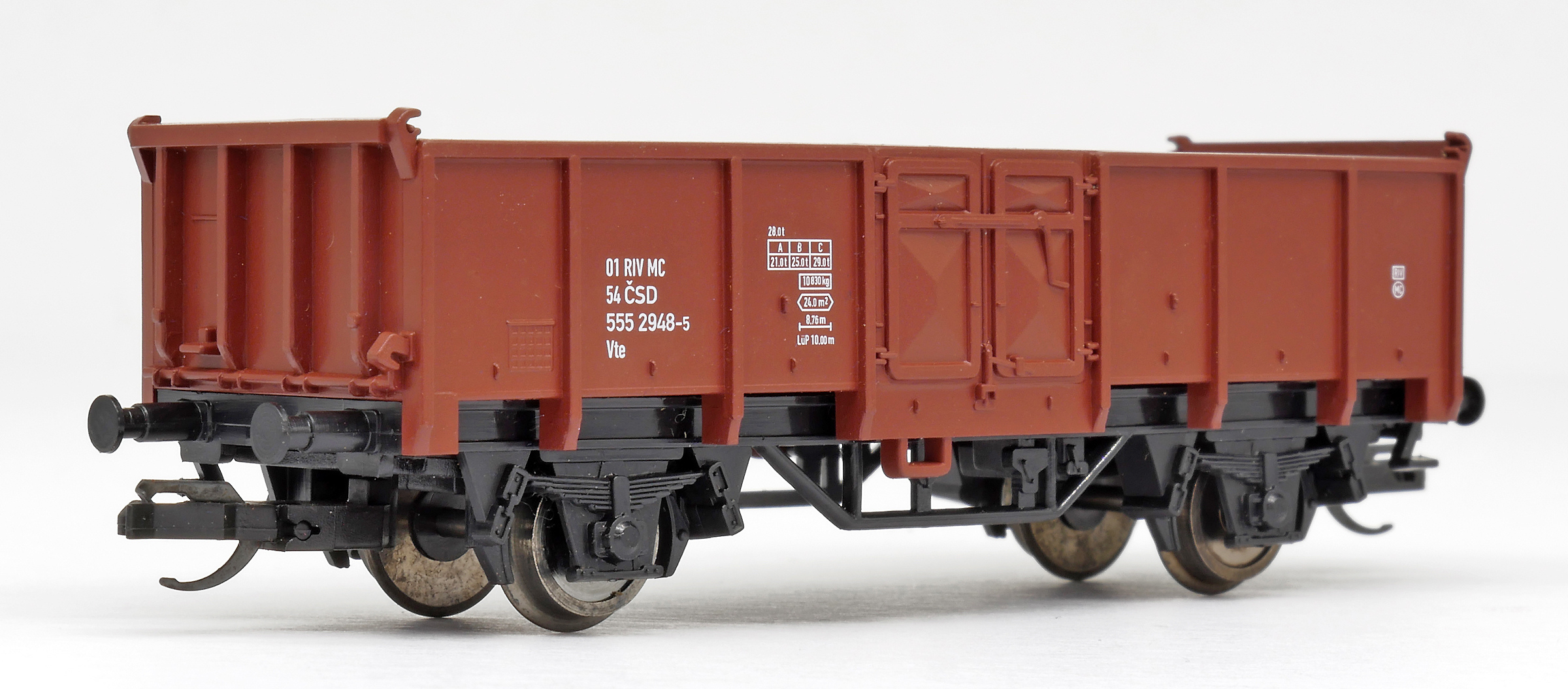 měřítko 1:120 - rozchod kolejí 12 mm kinematika krátkého spřáhla (KKK) podle normy NEM 358 81,5 mm - celková délka modelu přes nárazníky