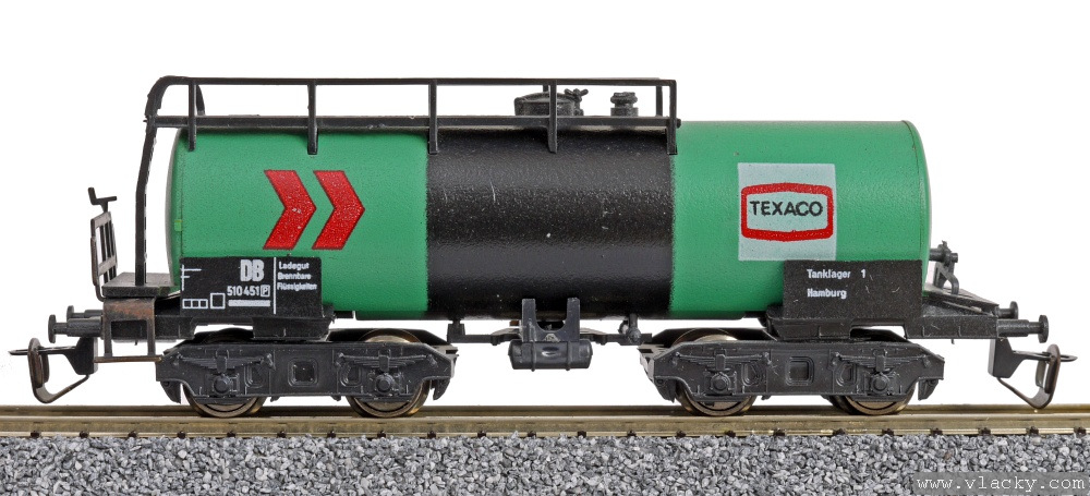 kotlový vůz zelený s černým pásem s logem „TEXACO“