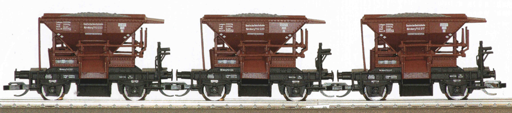 | set tří hnědých samovýsypných vozů typu Talbot s nákladem |