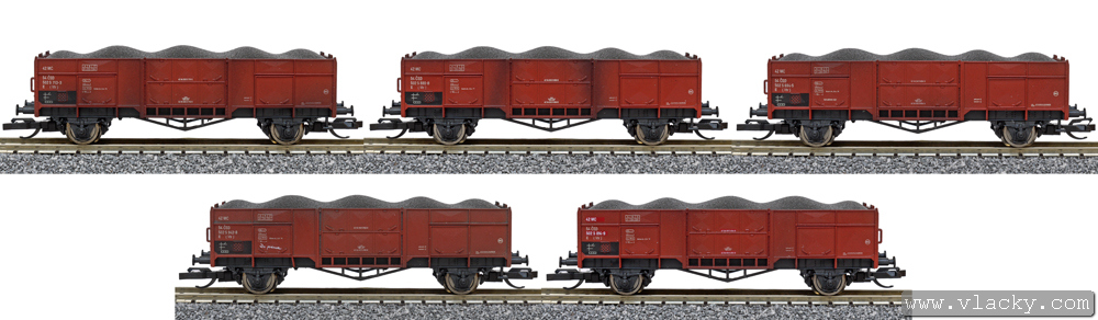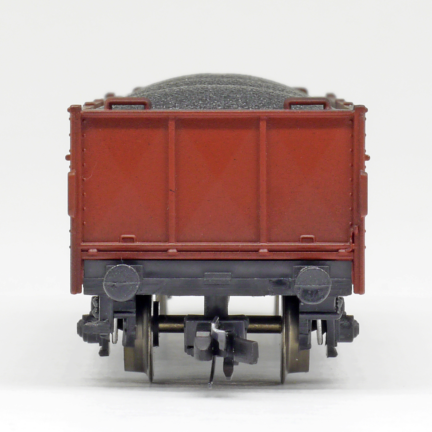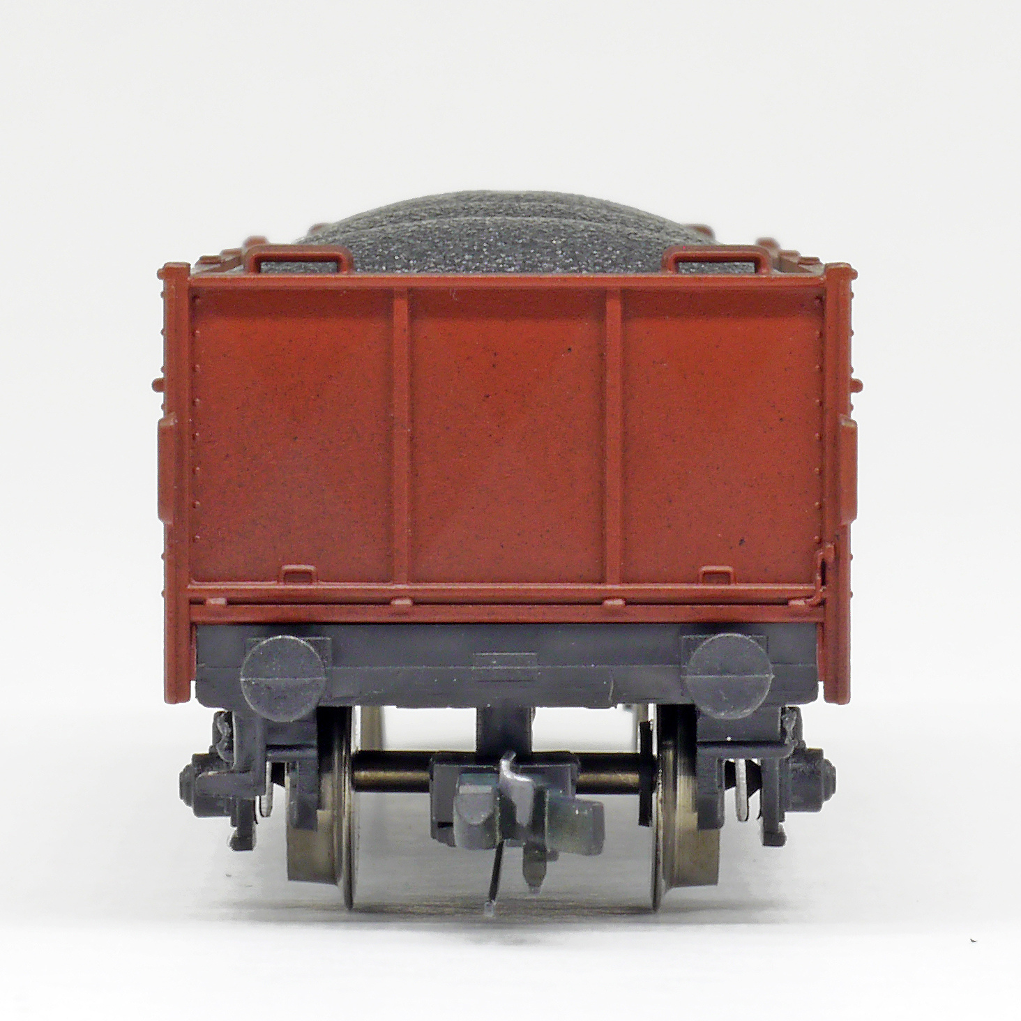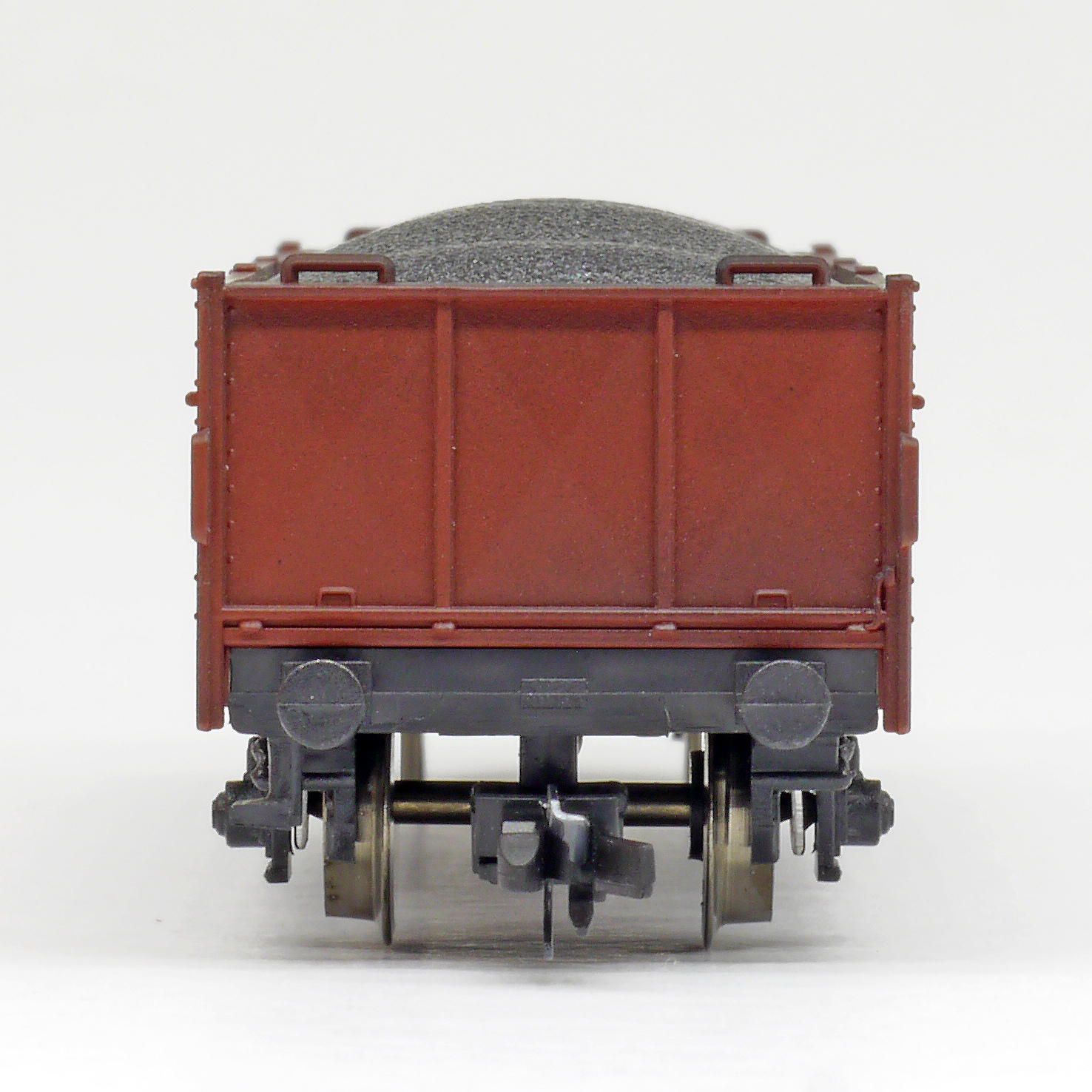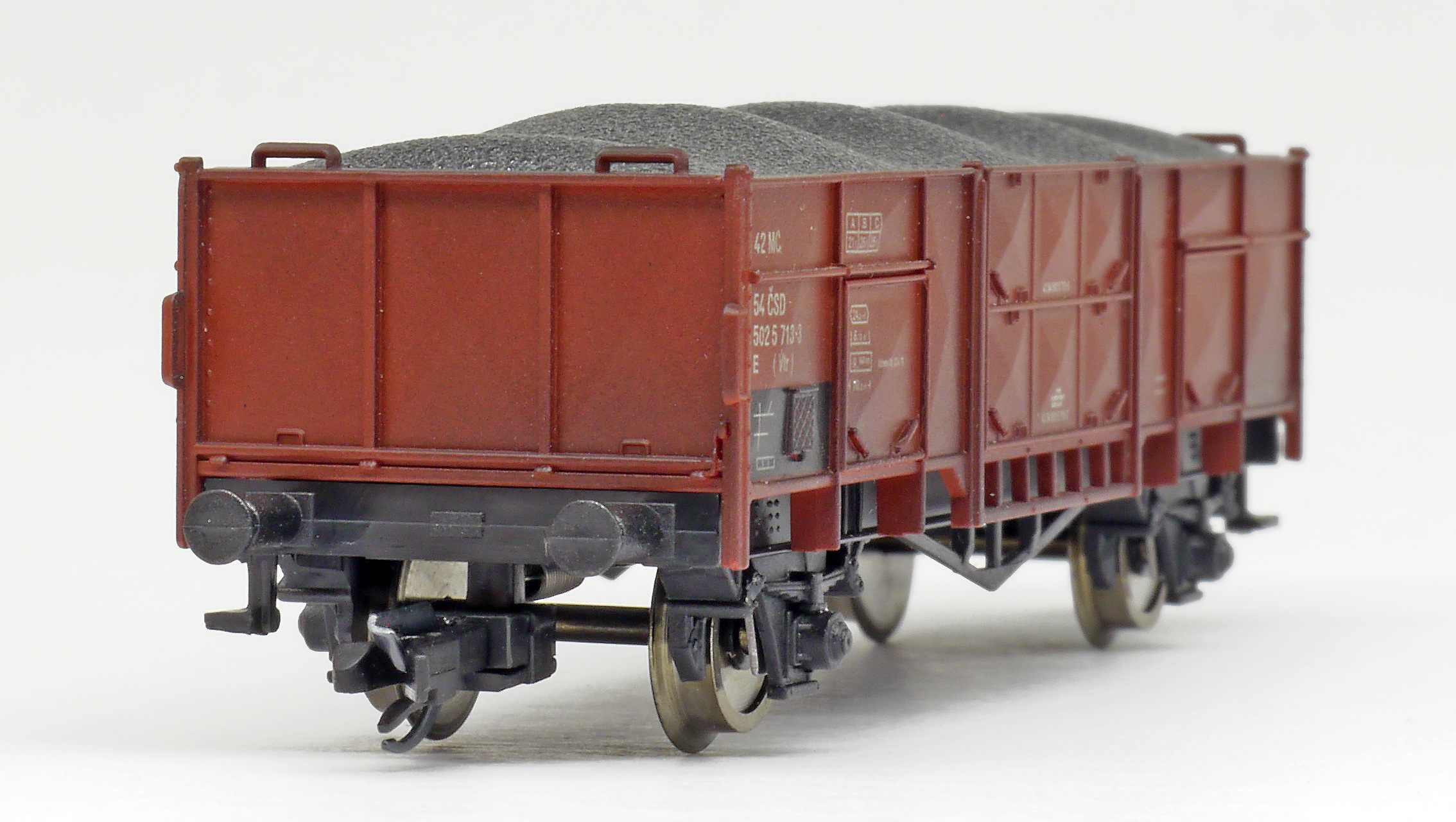 | otevřený nákladní vůz červenohnědý s nákladem, přetisky čísla vozu |