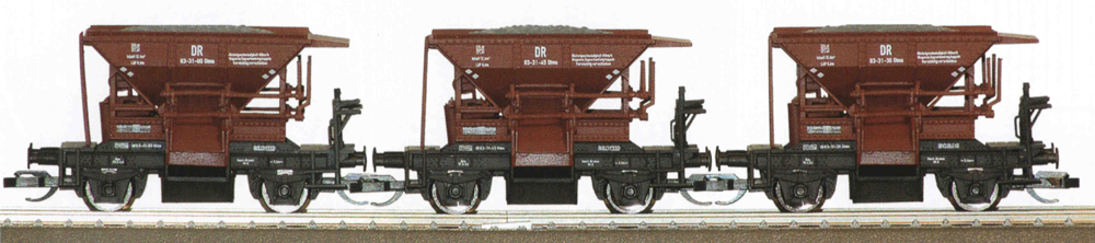 | set tří hnědých samovýsypných vozů typu Talbot s nákladem |