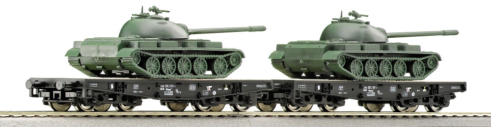 | set dvou plošinových vozů s nákladem tanků T55 |