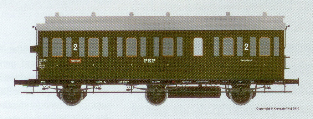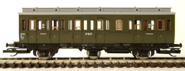 | oddílový osobní vůz tmavězelený s šedou střechou 2. tř. |