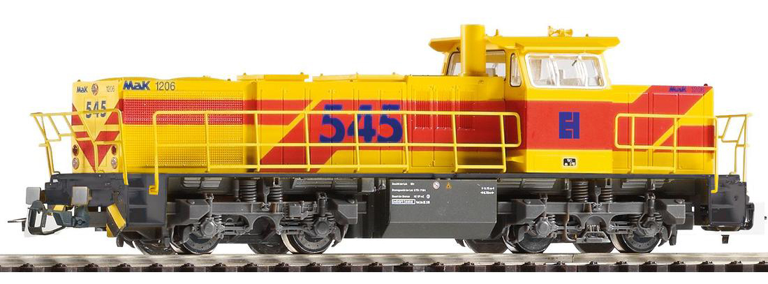 | žlutá-červená s velkým modrým číslem "545", tmavěšedý pojezd "Eisenbahn und Häfe |