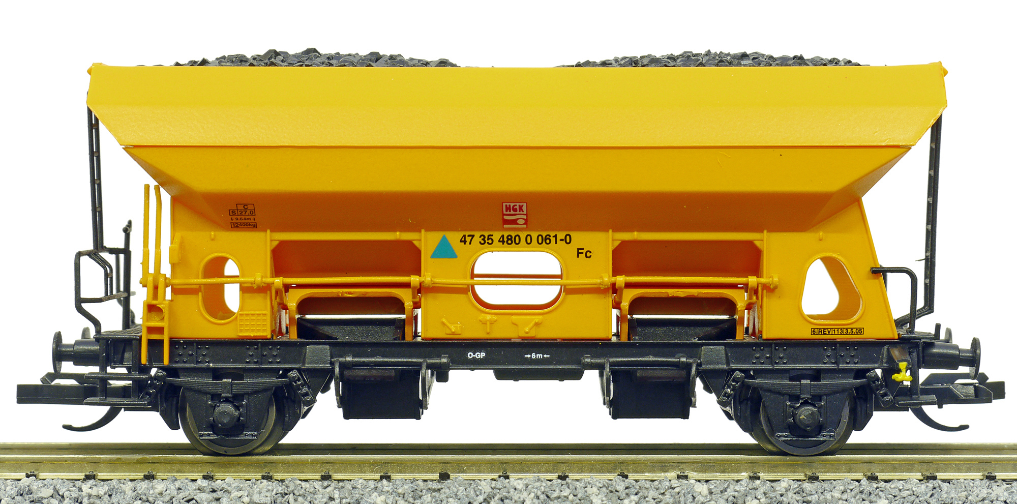 | samovýsypný vůz oranžový s nákladem HGK (Häfen und Güterverkehr Köln AG) |