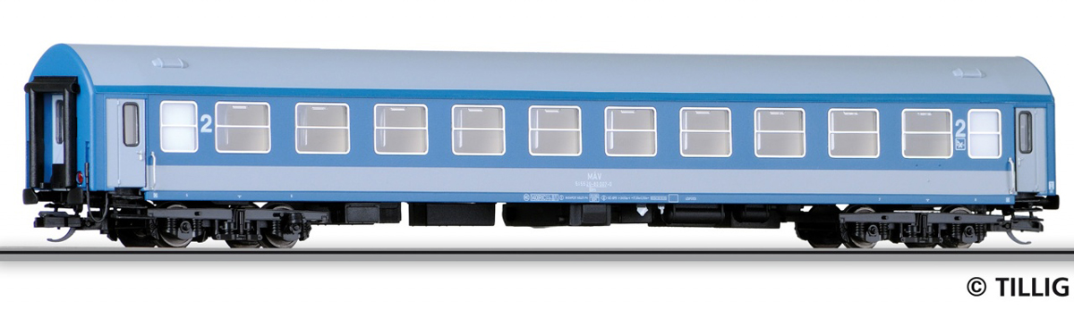 | rychlíkový vůz modrý s šedým pásem a šedou střechou 2. tř. |
