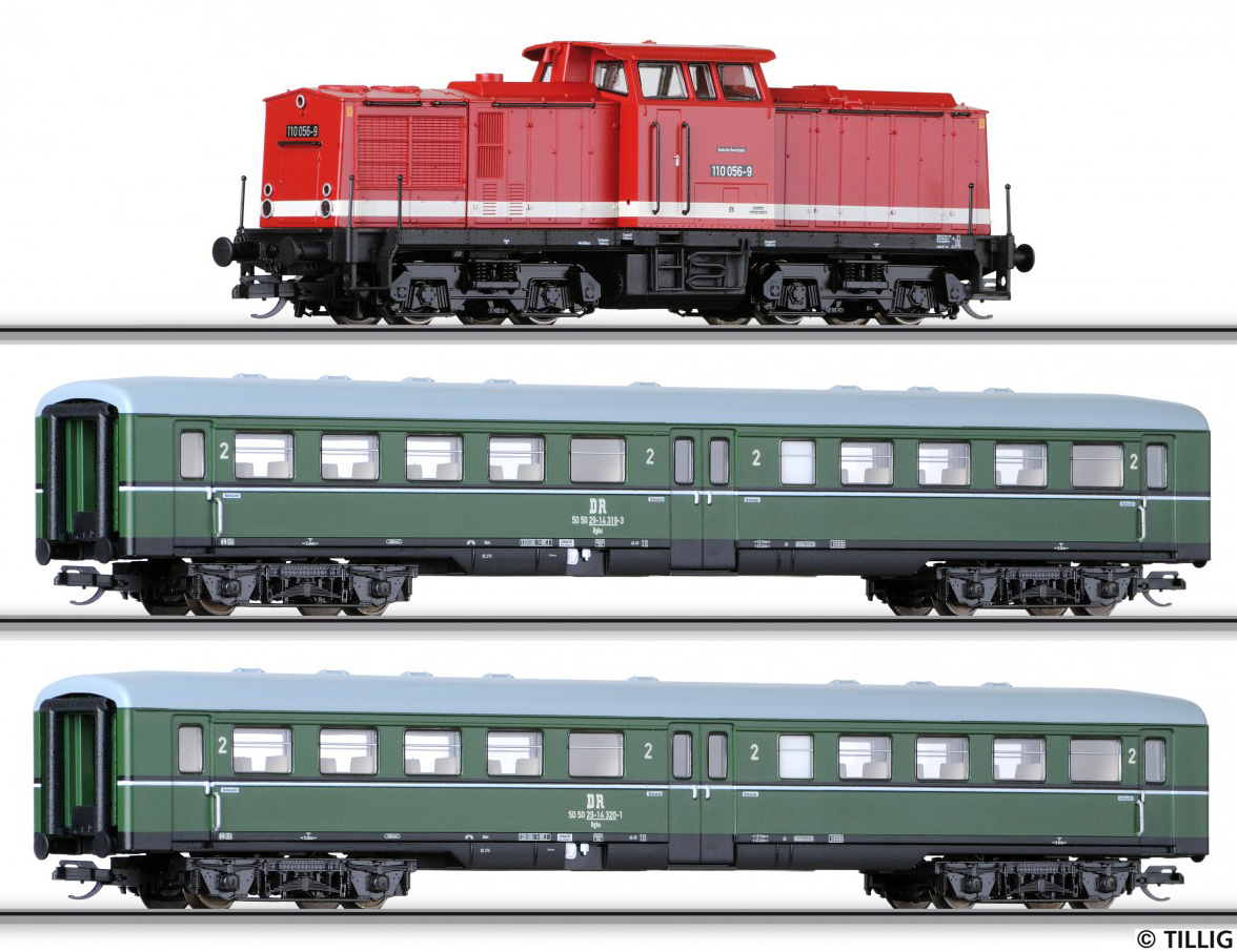 | set dieselové lokomotivy BR 110 a dvou osobních vozů E-5 |