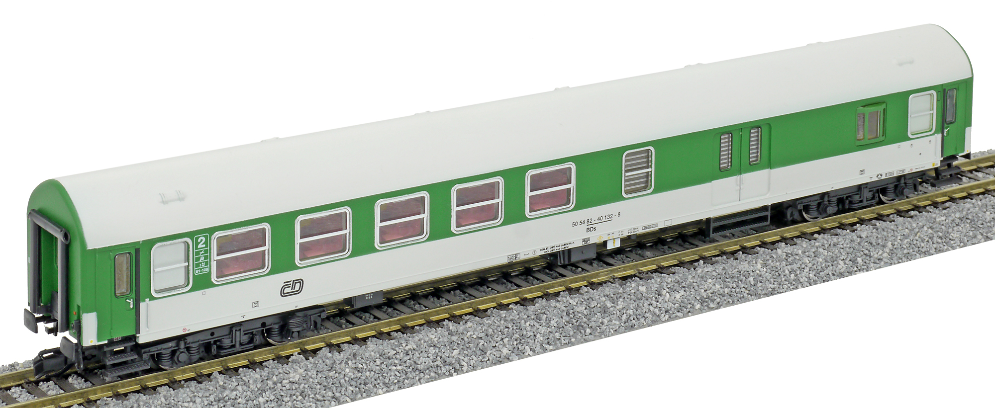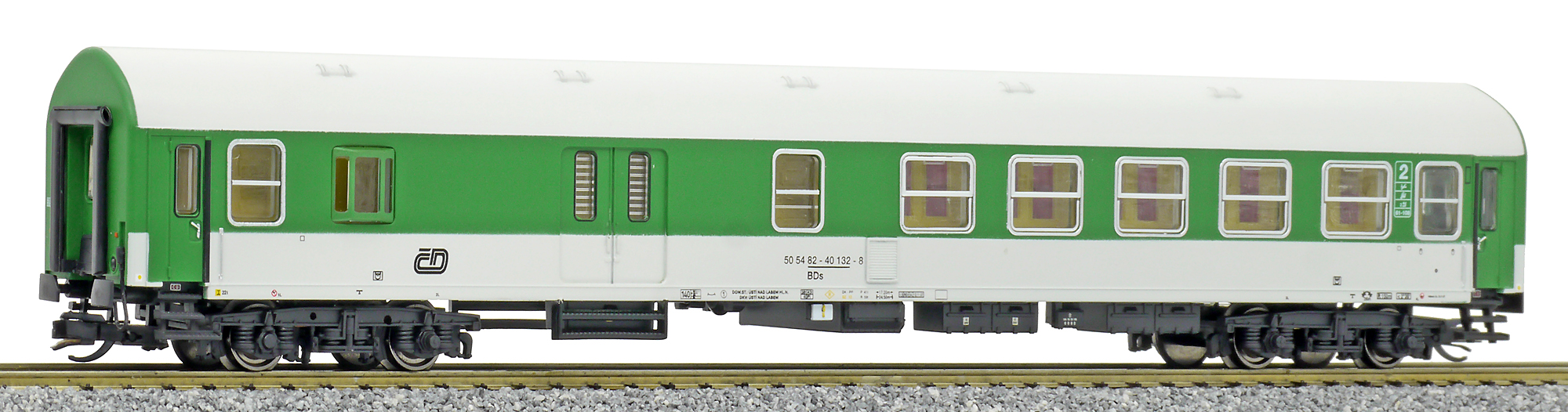 | rychlíkový vůz zelený-světle šedý se služebním oddílem 2. tř. |