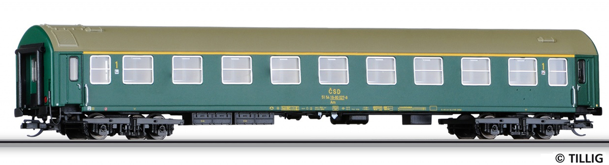 | rychlíkový vůz zelený s šedou střechou 1. tř. |