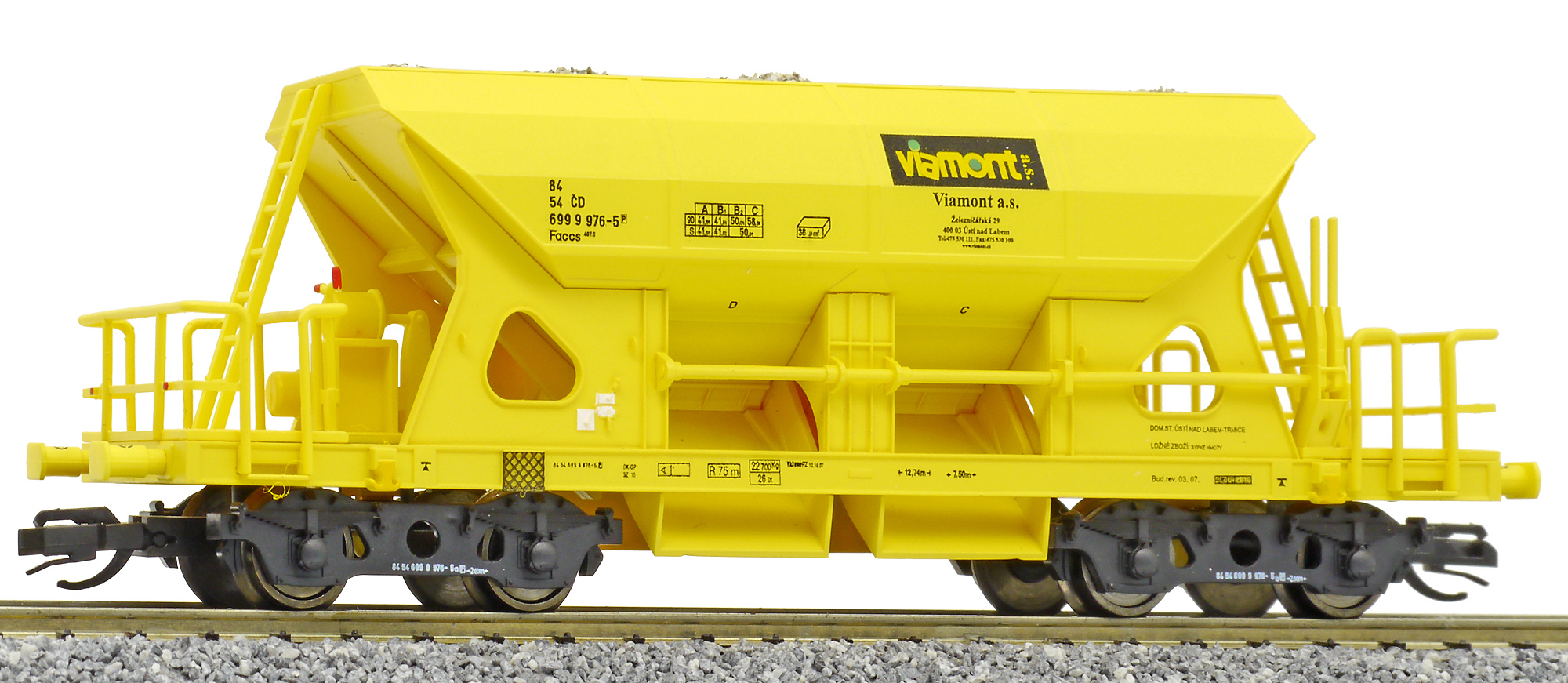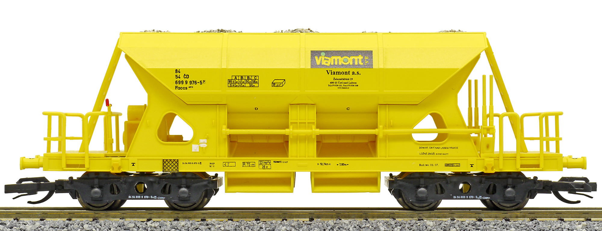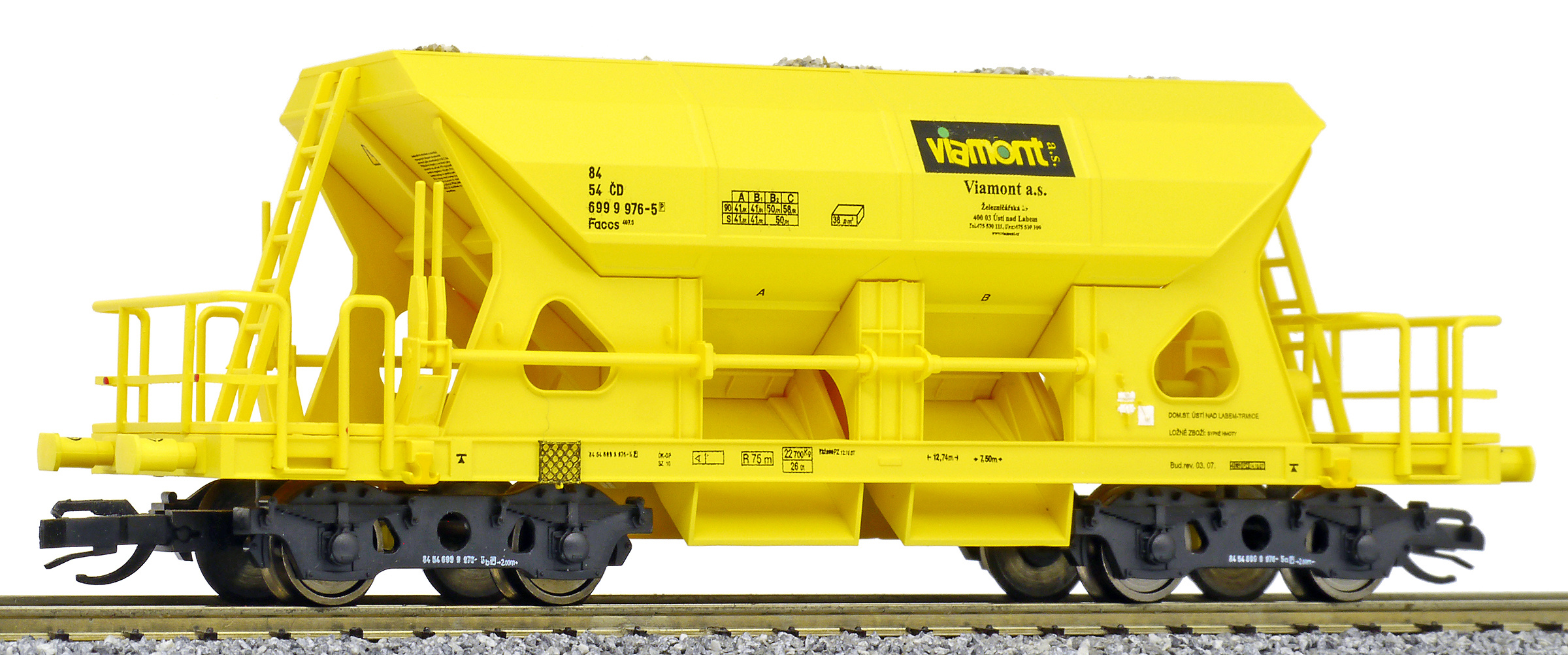 | nákladní samovýsypný vůz žlutý s nákladem štěrku „Viamont” |