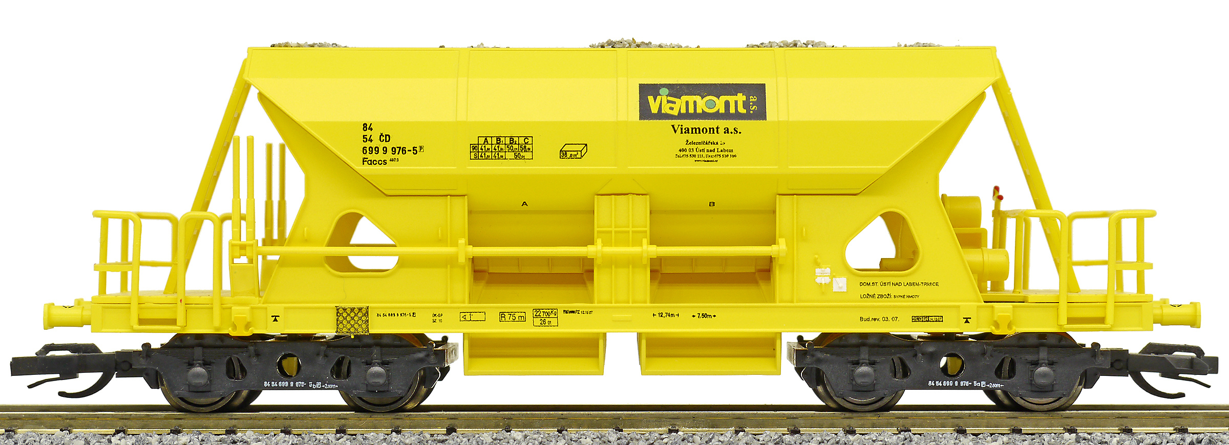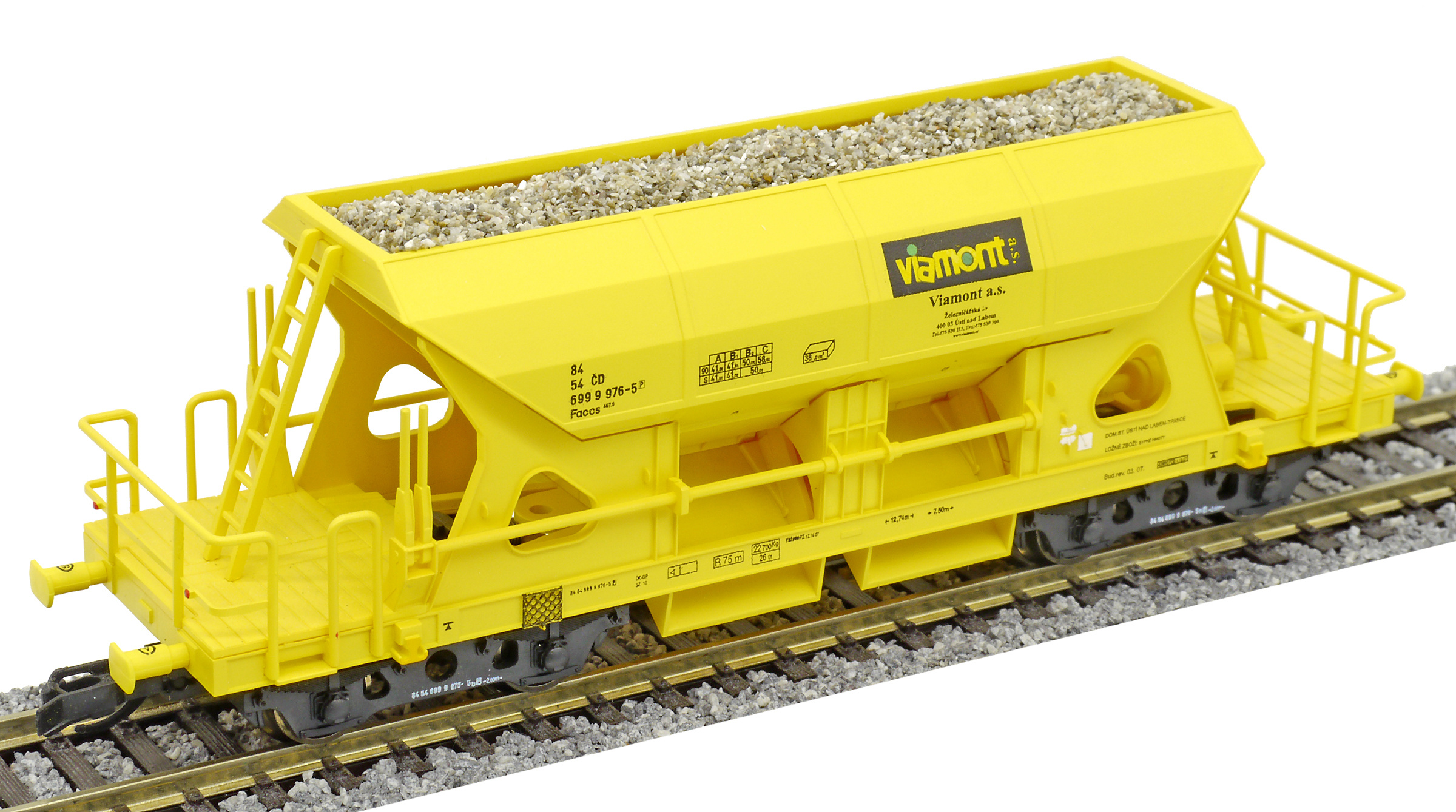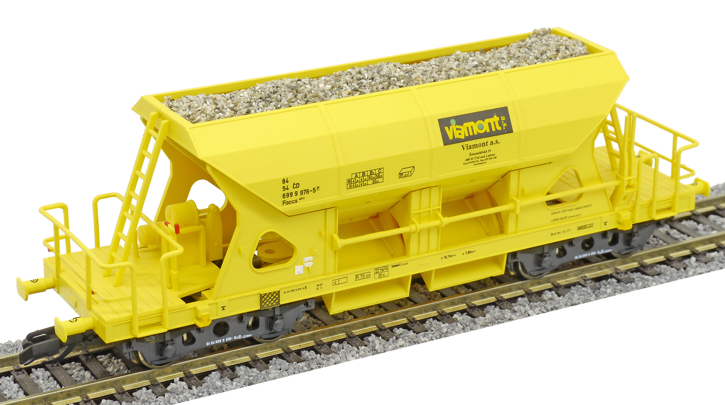 | nákladní samovýsypný vůz žlutý s nákladem štěrku „Viamont” |