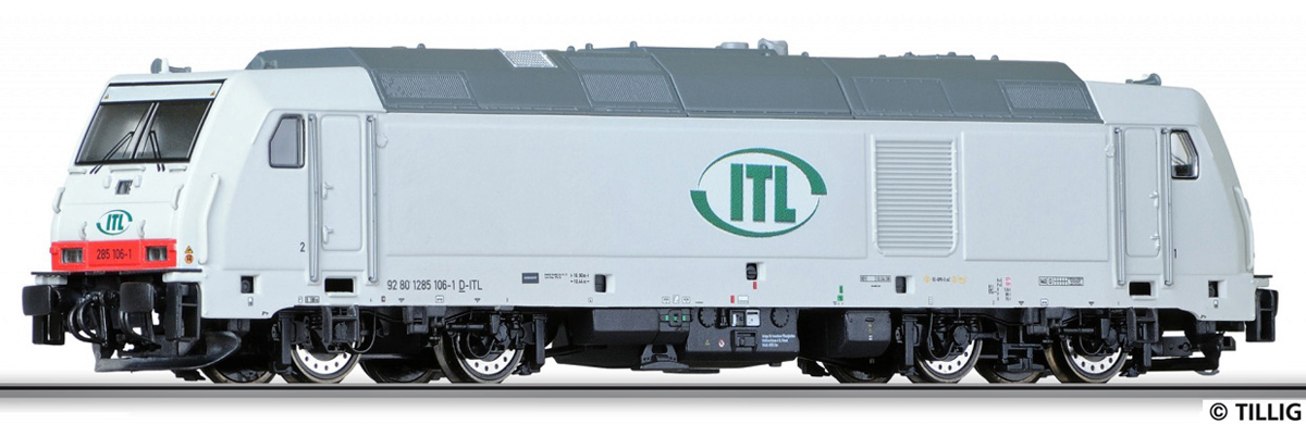 | dieselová lokomotiva bílá s hnědou střechou „ITL“ |